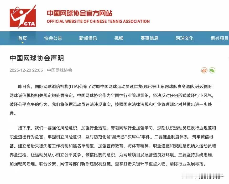 世界排名1316位的逢逄仁龙操纵球赛被禁赛12年!12月20日,国际网球诚信机构(ITIA)公布处罚决定,25岁的逄仁龙操纵或企图操纵22均球赛,被罚禁赛12年罚金11万美元。 据悉,2024年5月,逄仁龙操纵了他自己参赛的5场单打比赛,另外,他还对其他职业网球选手进行了17次腐败行为,又操纵了6场球赛。 操纵比赛是可耻行为!逄仁龙操纵比赛的钱从何而来? 网友:排名才1316操纵比赛有必要吗?
