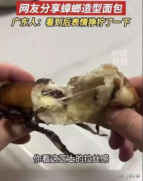 蟑螂造型面包,广东人看了都头皮发麻,表情狰狞的面包! 一广东人在一面包店看到一款蟑螂造型面包,看完后,这个网友感觉一股凉气直冲天灵盖! 这款面包据说表面是用黑松露做颜色,黑巧克力做翅膀和造型!看起来活灵活现! 最绝的是蟑螂肚子里另有乾坤,用的是芝士做蟑螂的拉丝感!然后用小珍珠做蟑螂的卵! 据说尝过的网友说这个玩意巨好吃!就是要闭眼吃!