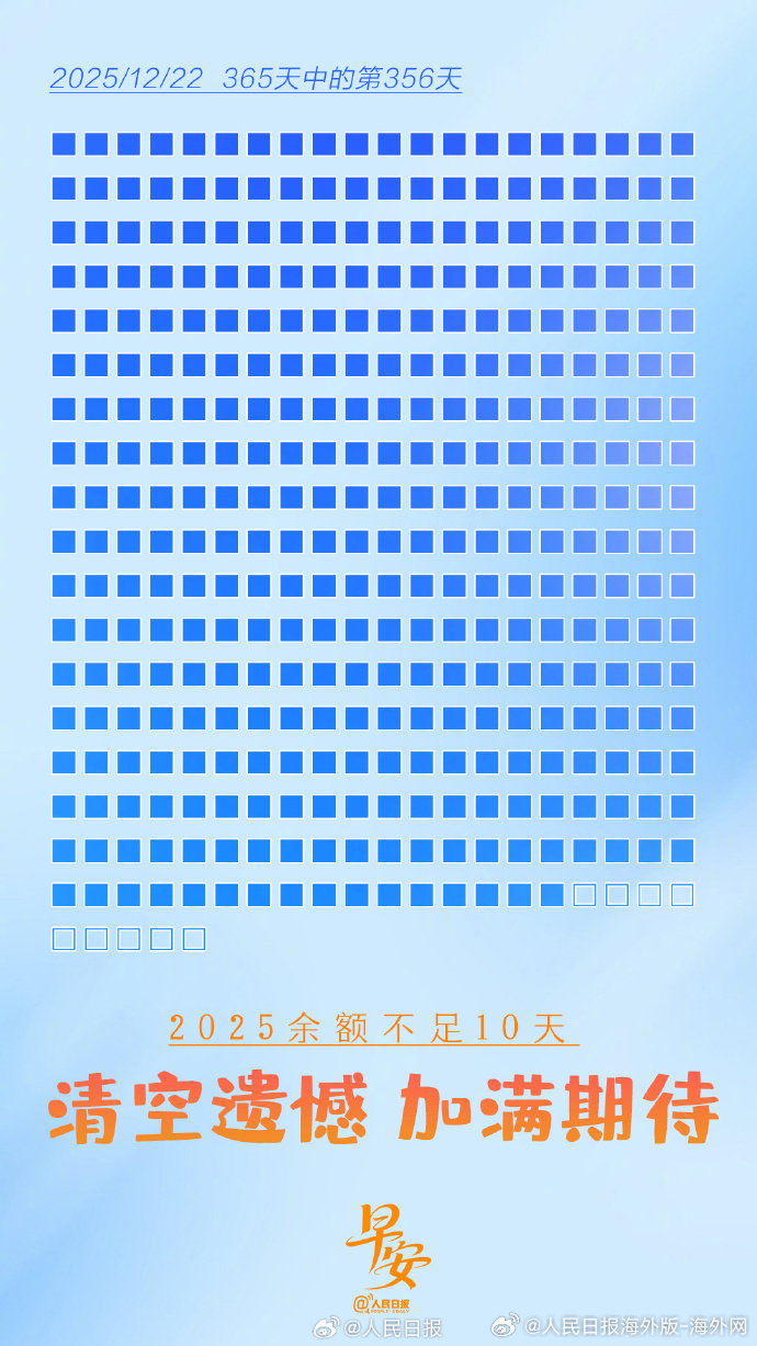#向海外朋友问好# 【回头看走过的路,处处都是风景】#2025余额已不足10天#,把遗憾轻轻清空,给日子加满期待。愿你这一年的每份付出,都结出沉甸甸的收获;心底藏着的愿望,都能如愿成真。#下周四就2026了#,以舒展的姿态,和即将到来的2026撞个满怀吧。早安!(人民日报)