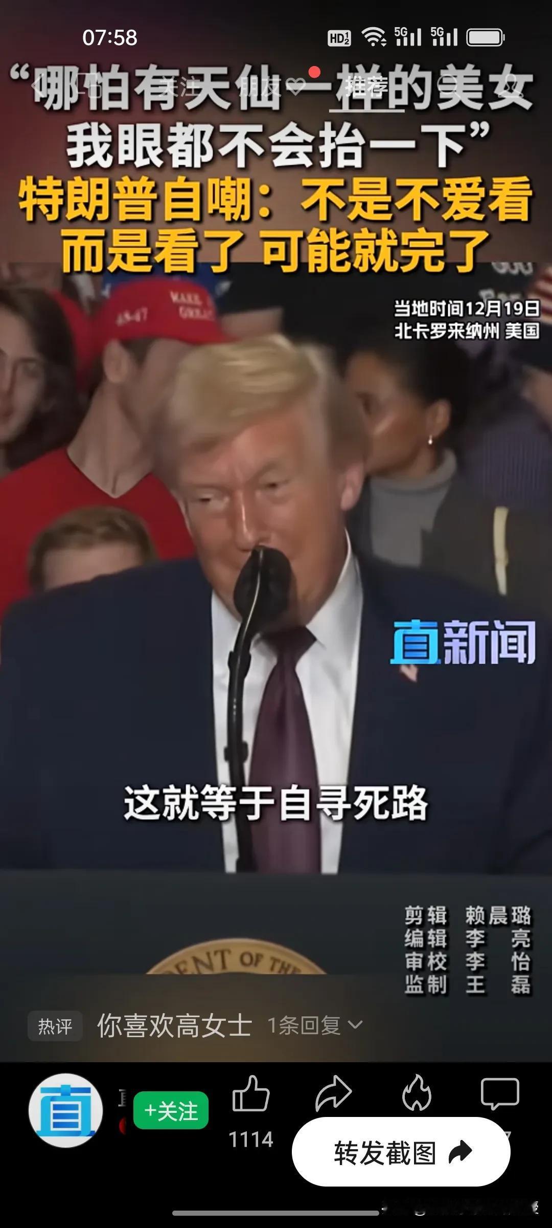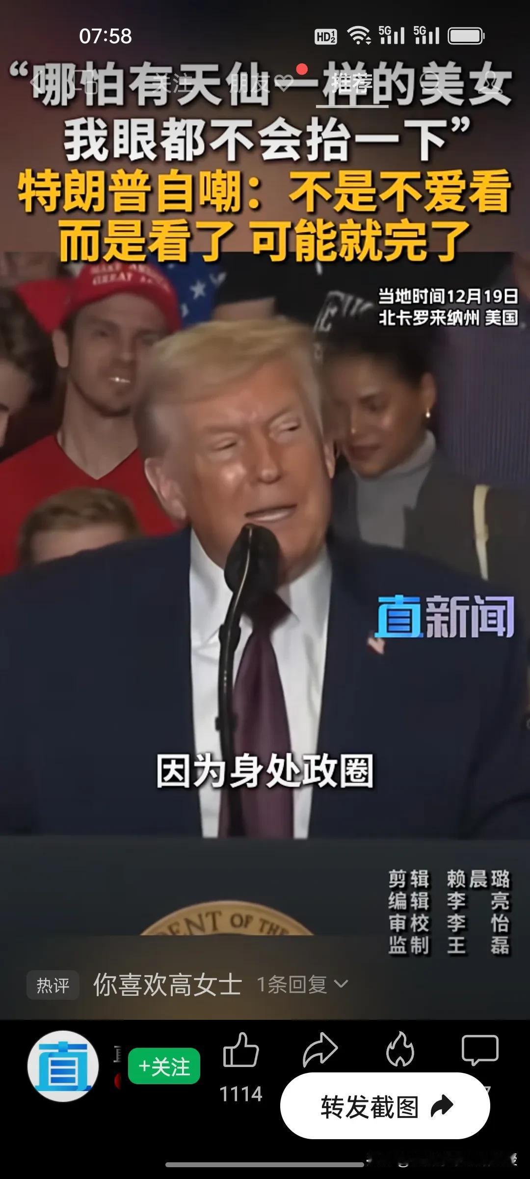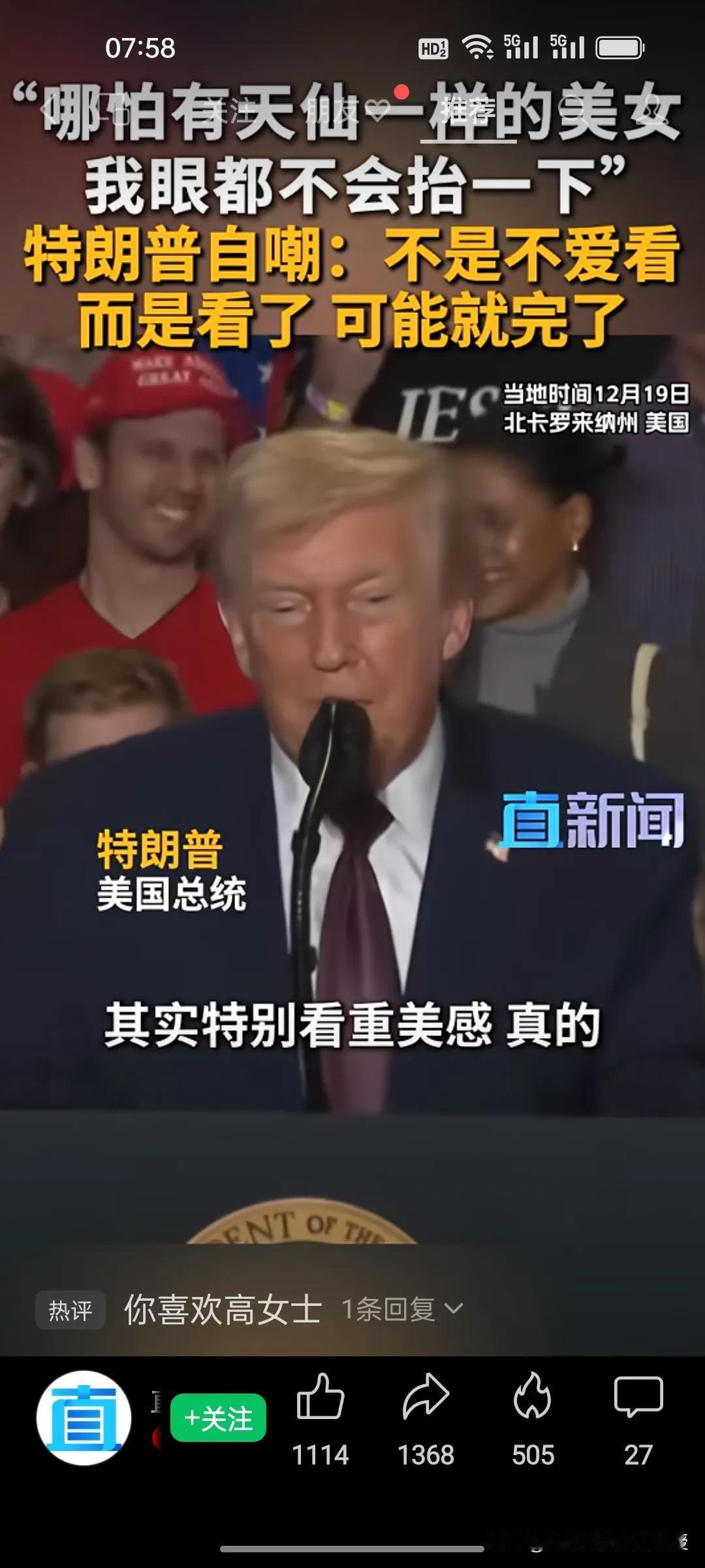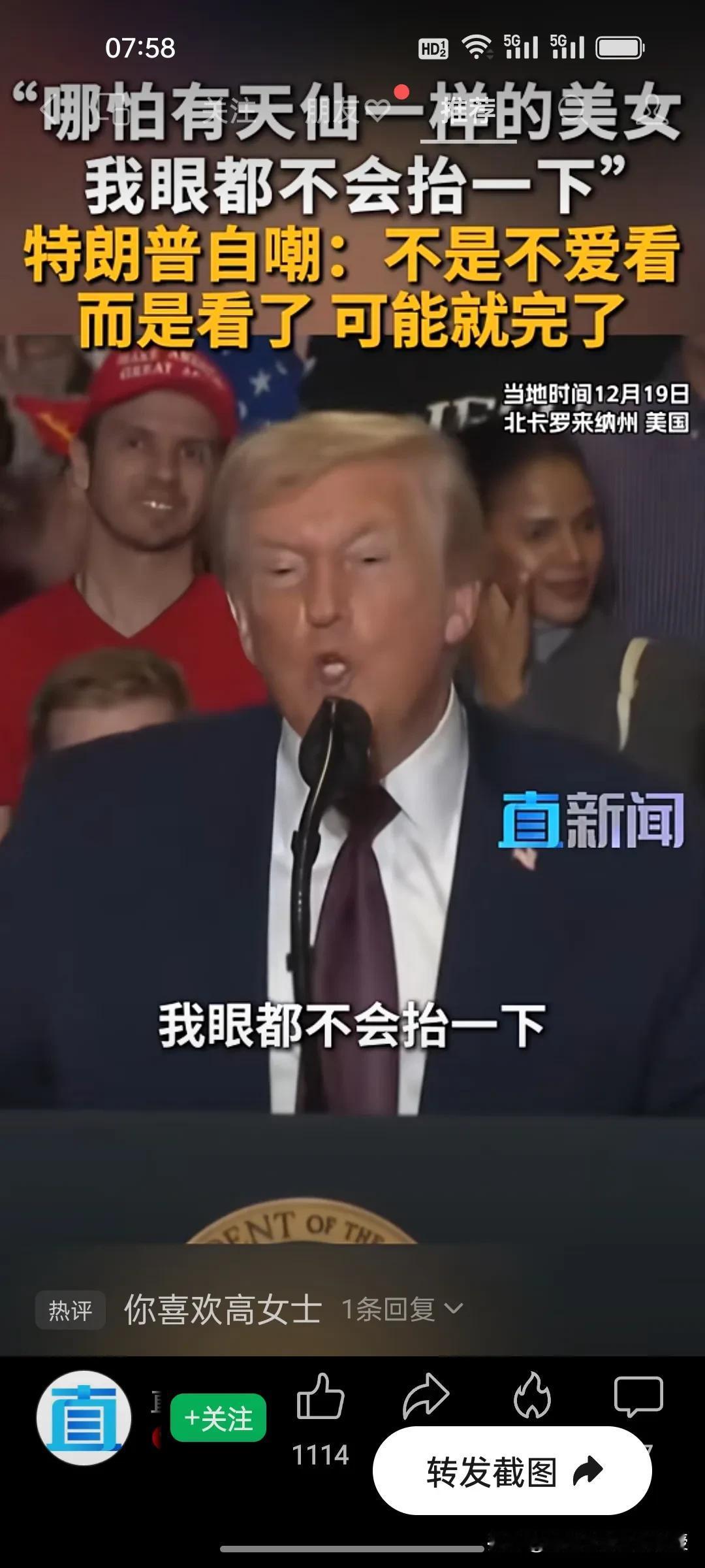 特朗普这番自嘲,普京一听也得掂量吧?虽然特朗普已经快八十岁了,可是在有的问题上一点不含糊。 最近他在北卡罗来纳州的演讲中提到他特别注重美感,但是女人除外,踏入政坛就不提外貌了,哪怕有天仙一样的美女走过,他眼睛都不抬一下。这一番表态,活脱脱是商人式的精准站位,拎得清孰轻孰重。现场观众纷纷哈哈大笑。 巧的是,前不久普京才亲口承认自己正在恋爱,还实诚地说相信一见钟情。特朗普这番话,很难不让人联想到是隔空递话。这般话术,果然是老江湖的手笔,姜还是老的辣啊!