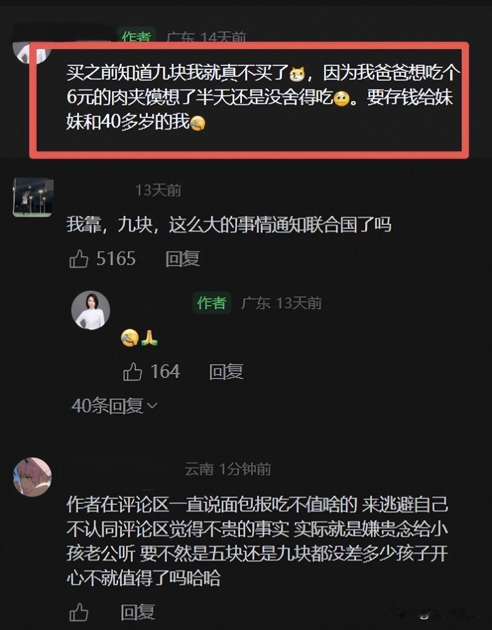“9块钱能要你命吗?”女儿买面包母亲对着屏幕发疯,太窒息了。[嘘] 一块售价九元的面包,让一位母亲在街头没能控制住自己的情绪,最近这段关于母亲和面包的网络视频,让很多人停下了划动的手指,心里也跟着不是滋味。 视频里这位母亲付完钱后,情绪明显激动起来,她对着手机镜头,一遍遍重复着面包的价格,声音因为激动而显得有些尖锐,女儿手里拿着刚咬了一口的面包,站在旁边,看上去有些不知所措,很多网友看完后的第一反应是不解:为了一块面包,至于这样吗? 但事情的关键,可能真的不在于那九块钱,后来我们了解到,这位母亲在别处提起过,自己的父亲过去连一个六块钱的肉夹馍都舍不得买,总把省下的钱留给家人。 这份爱很沉,沉到有时候会让人忘记,爱其实可以有更轻松的表达方式,它无形中似乎定下了一个标准:爱,就意味着要拼命克制自己。 看了这个视频,心里真不是滋味,一块9块钱的面包,能让一个妈妈在马路边上,对着手机镜头崩溃成那样,评论区都炸了说什么的都有。 “最惨的是孩子,拿着个咬了一口的面包,看着妈妈发疯,该有多害怕和无助。” “这已经不是钱的问题了,是情绪暴力,孩子以后可能再也不敢开口要任何东西了,心里永远会觉得自己是家庭的负担。” “9块钱,现在能买啥?一杯奶茶都不够,至于当街这样吗?” “说真的,嫌贵你可以当时不买,或者跟孩子好好说,下次我们买别的,而不是买了之后,再这样折磨孩子也折磨自己。” “她把视频发上网,是想让网友一起骂孩子不懂事吗?没想到大家都清醒得很。” “可能她真的很难,9块钱对有些人来说就是一顿饭钱。” “压力大的时候,一点小事就会成为压垮骆驼的最后一根稻草,她冲动的不是面包,是生活的压力。” “有压力也不是伤害孩子的理由,生活不易的大有人在,但把孩子当出气筒,就是不对。” “她说自己爸爸连6块钱的肉夹馍都舍不得买,省给她和妹妹,看同样的模式又来了用自我牺牲来绑架家人,让全家都活在愧疚里。” “这种‘穷’思维和匮乏感,真的会传下去,上一代觉得‘我不配吃好的’,这一代就变成‘我孩子不配吃贵的’,而且火气更大。” “她发疯可能不只是气9块钱,是气自己怎么又成了当年那个‘不懂事’、让父亲牺牲的女儿,她活成了自己最讨厌的样子,又把刀口对准了自己的孩子。” “养孩子,物质上穷一点可能没啥,但精神上不能这么‘穷’,给孩子一种‘你不配’、‘我们家不配’的感觉,才是最伤的。” “情绪稳定的父母,是孩子最好的风水,9块钱的面包看清一个家庭的情绪状态,代价太大了。” 最后想问问大家:如果你是这个女孩,经历了这一幕,你当时心里会怎么想?对你以后会有什么影响?作为家长,当你因为价格超出预期而对孩子的消费感到不快时,你觉得怎样处理更合适?欢迎在评论区聊聊你的观点和故事。 信息来源:搜狐新闻