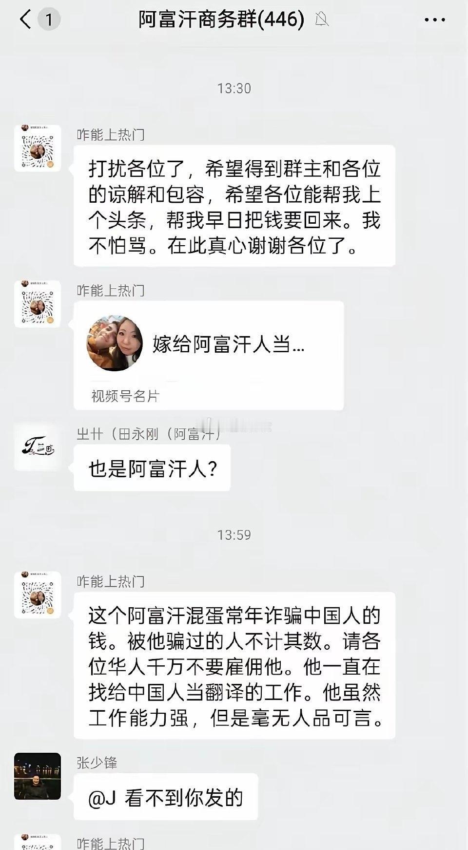 广东女子嫁给阿富汗小伙当二老婆,而今落得个人财两空。女子的短视频账号ID嫁给阿富汗人当二老婆的故事,本来是想来秀恩爱的,结果惨变维权事故现场。这个阿富汗小伙应该是在中国留过学,精通汉语,所以他在国内就是从事外贸翻译的工作,工作能力不错。但是人品很渣,这个女滴和他交往,甘心情愿做小老婆,因为阿富汗小伙国内有妻子。他们在国内生活,俨然一家人,女子日常各种秀。激情过后,就变成了这个阿富汗小伙骗钱骗感情。据说,这个女滴钱款全部被阿富汗小伙卷走了,她在阿富汗商务群里曝光他,一石激起千层浪,很多人都说这个阿富汗小伙是个十足的渣男,原来只有这个女滴一直被蒙在鼓里。