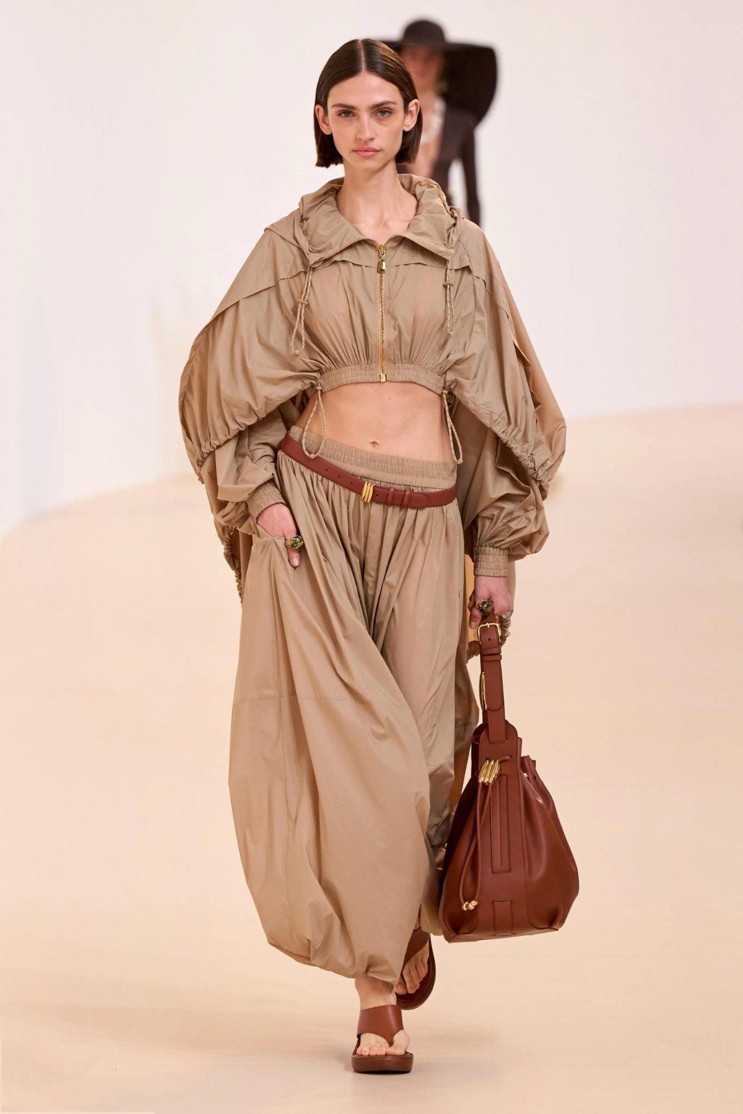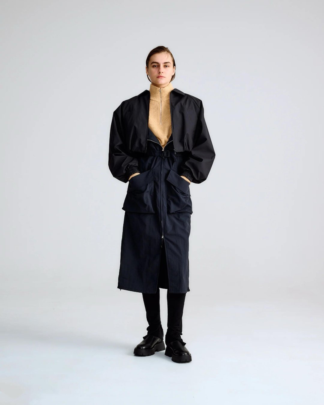 风格大赏都市户外风现在大家穿衣越来越追求“松弛感”和“多场景切换”,都市轻户外风正合这种需求。它不像传统通勤装那样刻板,而是把户外服装的机能元素融入日常穿搭,让人在城市里也有随时出发去户外的感觉。比如衣服上的调节绳带,可以轻松收紧或放松,打造随性又有型的轮廓,上班通勤、下班散步都能穿。机能调节扣袢则为普通衬衫或夹克增添科技感和实用性,让一件衣服能适应多种场合。轻机能与通勤风的混搭,就像打工人常说的那句话:“去上班的路上,也在为远方做准备。”时尚灵感解读