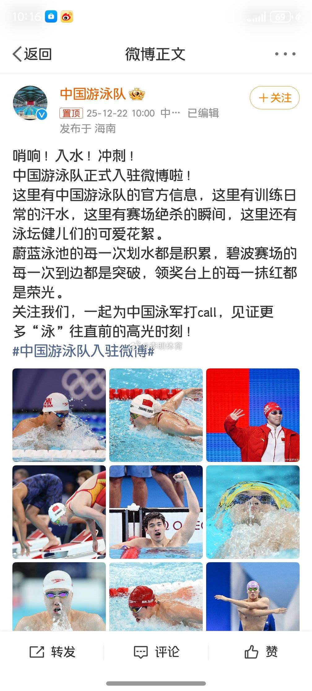 中国游泳队入驻微博 恭喜微博,又一个国字号加入!