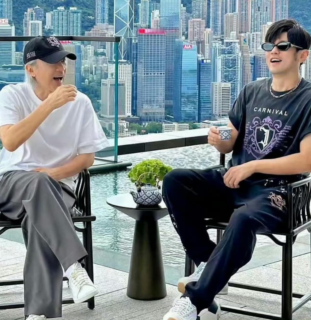 网友A:看到周杰伦和周星驰的合照,我DNA直接炸了,华语乐坛天花板和喜剧界顶流同框,这谁顶得住啊! 网友B:我也是!杰伦戴墨镜酷帅依旧,星爷笑得还是那个无厘头男神,两人坐一起的画面,瞬间把我拉回童年暑假。 网友A:这波梦幻联动简直是80、90后的青春回忆暴击,一边是《双截棍》一边是《大话西游》,双倍情怀直接拉满。 网友B:真想喊一句“爷青回”!两位都是我们成长里的重要符号,同框就像两段记忆拼成了一张神仙合影。 网友A:要是他俩能合作一次,比如星爷电影里来首杰伦写的主题曲,那简直是跨次元的狂欢。 网友B:梦想可以有,这合照已经是给粉丝最好的礼物了,光看着就够激动一整天。