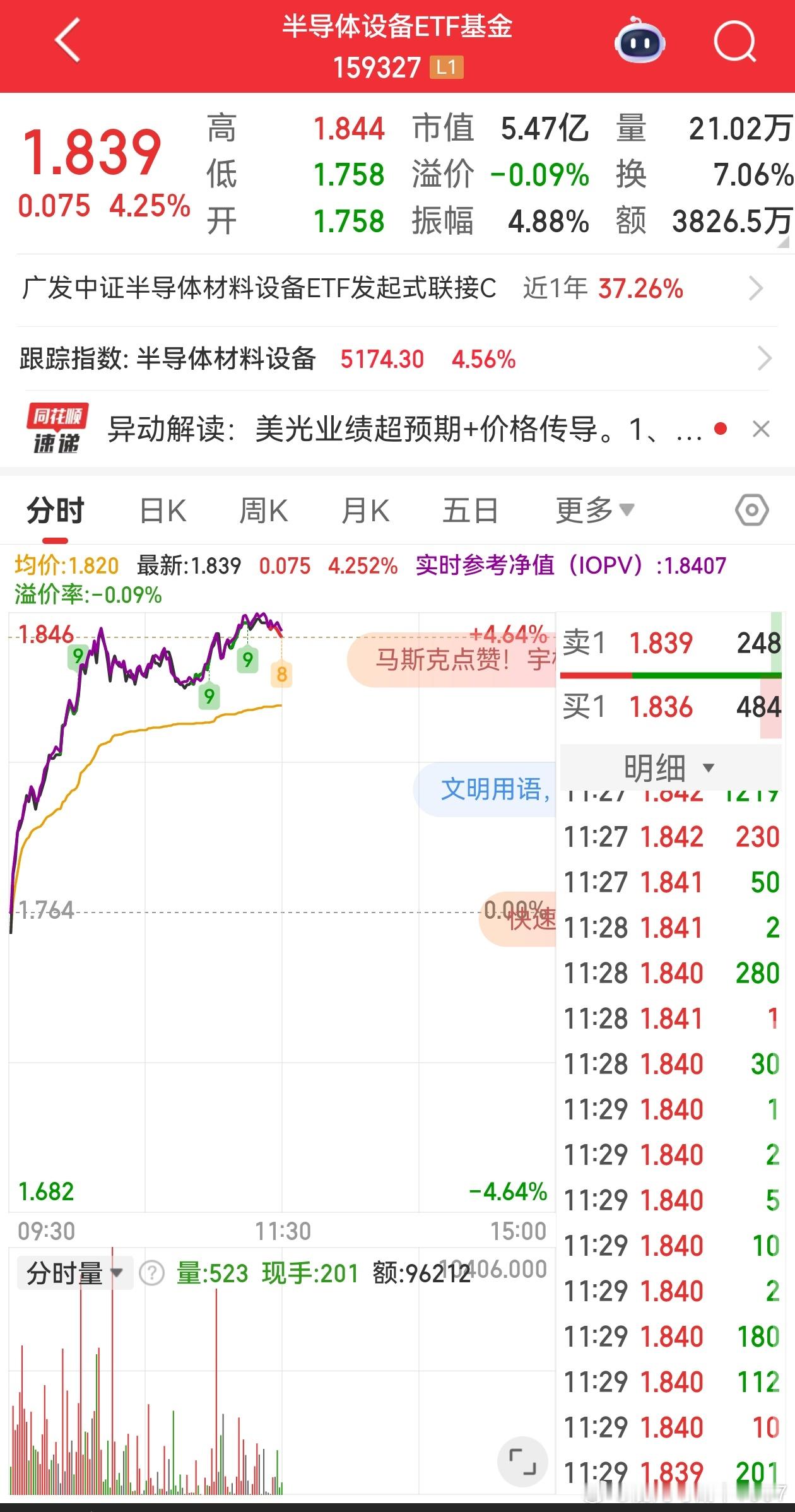 今天半导体板块大涨,不管是A股的中芯,还是港股的半导体股都在涨,海外的英伟达、美光这些巨头也接连走高。关键是利好消息一个接一个:美光确认HBM产能卖爆了,AI需求还往传统存储领域外溢,整个存储行业都供不应求;国产光刻机,上海微电子28nm机型已经进入量产验证,核心部件国产化率超85%,2026年还有更优设备要交付。中微公司并购CMP设备商众硅,补全湿法工艺短板,平台化潜力兑现打开远期市值空间,国产设备环节协同性增强。另外国家大基金三期砸了几千亿重点支持半导体设备这些卡脖子领域,地方还有各种研发、设备补贴,政策和需求都凑齐了,行业景气度直接拉满!芯片板块我主要看好国产替代的核心环节,像光刻机产业链、存储设备、晶圆,光模块这些高景气赛道,现在半导体行业正是政策托底、需求爆发的黄金窗口,国产化率提升的确定性特别强。如果想要踩准半导体国产替代的节奏,吃满科技强国的时代红利,但又不懂选哪个好,也可以直接考虑半导体设备ETF基金(159327),要是习惯场外申购,也能选它的联接基金(A:023828;C:023829)。 a股 上证指数 大咖说财经