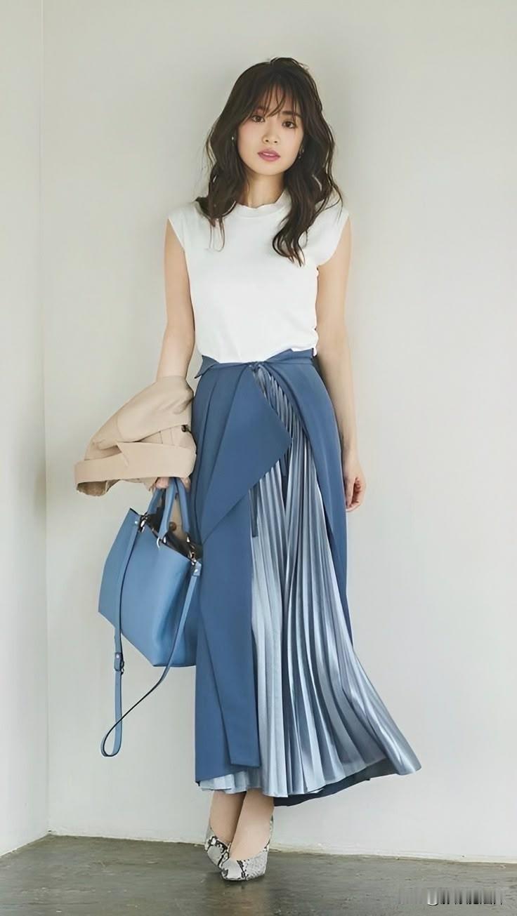 清新简约风穿搭,白色上衣+蓝色百褶裙,优雅气质满满! 白色上衣配蓝色百褶裙,这清新简约风谁穿谁美!夏天就是百褶裙的主场,蓝色百褶裙自带清爽感,每一道褶皱都灵动俏皮。 白色上衣适配度超高,无论是纯棉的简约T恤,还是雪纺的飘逸衬衫,和蓝色百褶裙搭配都优雅气质满满。它俩的组合不挑身材,梨形身材能遮胯,苹果型身材能凸显腰线。 日常通勤这么穿,既得体又不失时尚;周末出游这么搭,漫步街头就是一道亮丽的风景线。这对搭配CP,闭眼入就完事儿! 穿搭 裙子 白色印花衬衫裙