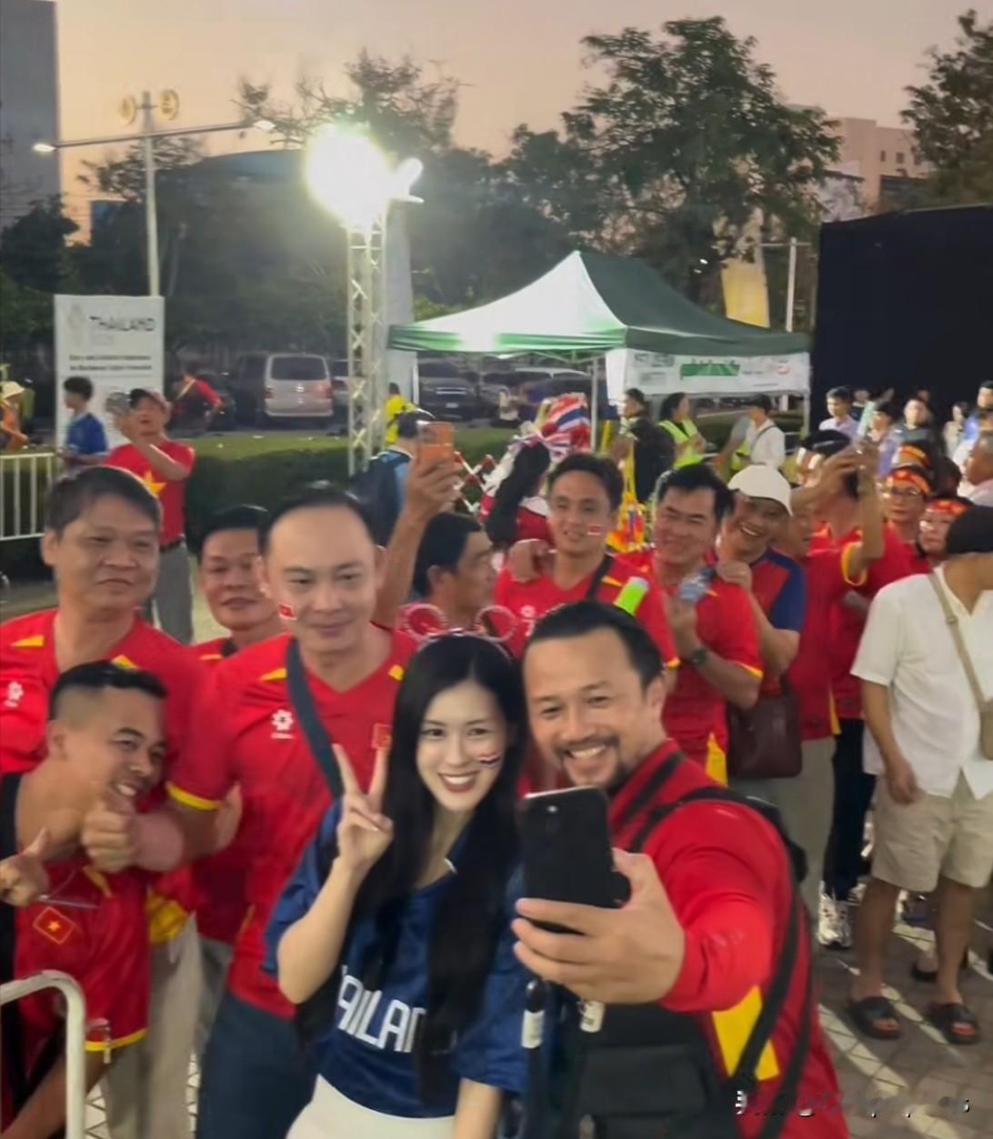 最近在东南亚运动会泰国和越南一场足球比赛期间,有一名泰国女生 球迷突然火了。 这位来自泰国的美女 因颜值太高了,引来许多越南男球迷排队要求与其合影留念。但也因颜值过高突然传出她是一位男性,甚至有人说这位球迷此前是泰拳选手,后因比赛失败选择了变性。 吓得这位泰国的美女 赶紧出来辟谣:“因为我的国家有很多帅哥,所以我必须向外国人证实我是女的,在一个男人比女人漂亮的国家,我真的要确认一下自己的状态! ”