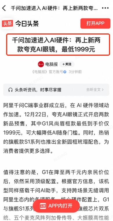 一夜之间,中国科技又给硅谷巨头们上强度了! 先是在大模型的全球对决上,阿里Qwen强势崛起,稳居全球前三,力压美国代表队Meta一头;再是7月,阿里旗下夸克宣布正式进军AI眼镜领域,再次剑指行业第一Meta。 阿里和Meta之间的渊源由来已久,只不过这次阿里拿出了更强的杀手锏,夸克AI眼镜在今天开始了新品预售,其中G1款最低到手价仅1999元,比Meta二代眼镜约2691元的售价还要低。 以Meta为开端,曾几何时还属小众赛道的智能眼镜,如今已然成为中美科技巨头重兵集结的竞技场。IDC预计,到2026年,全球AI眼镜市场出货量将突破2368.7万台,其中中国市场出货量将突破491.5万台。 但Meta的成功也给中国厂商留下了一道难题:如何在中国市场,做一款比 Meta 更实用、更舒适、更聪明的眼镜? 阿里给出的答案是,硬件是骨架,生态才是灵魂。Meta 的护城河是社交媒体,而夸克G1的杀手锏,是将阿里庞大的生态融入到每个人的日常生活中,尤其是搭载了千问AI助手,不到两千多的价格不光芯片配置不打折,更换来的是一个全天候的 AI 助理,这是比Meta更值得的尝试。 而且现在,夸克AI眼镜的产能也正在加速爬坡,相信距离到国际市场跟Meta争锋的日子不远了,面对这样一个既有技术实力又有价格优势的对手,也挺好奇Meta该如何接招呢?