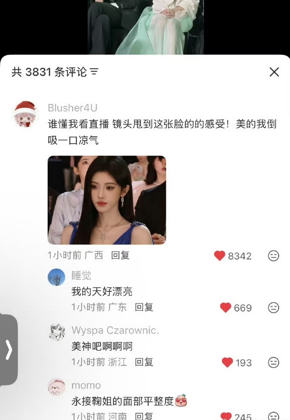 小红薯星光大赏全明星群像视频第一条高赞就是夸鞠婧祎的,鞠姐每一次活动美貌都能大出圈