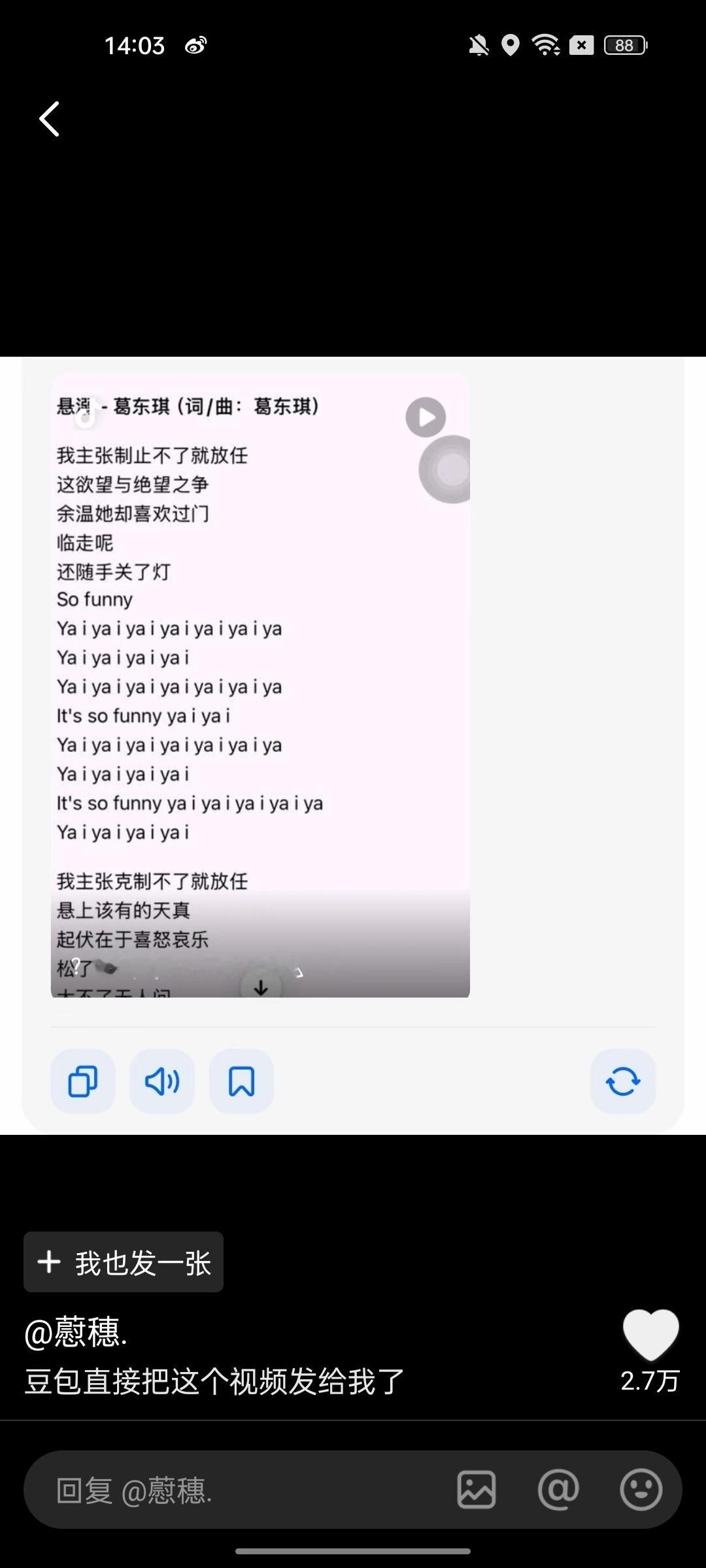 想出让豆包唱悬溺的人真是个天才 .: 豆包直接把这个视频发给我了哈哈哈