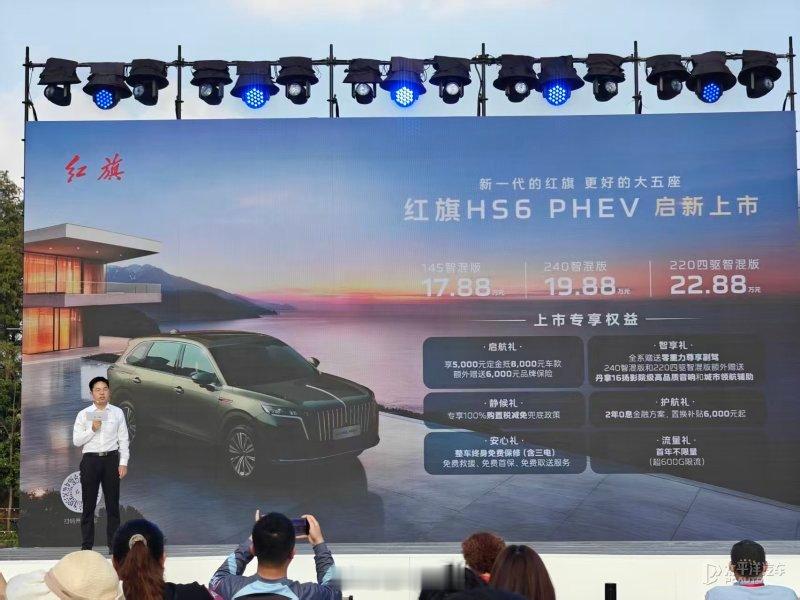 红旗HS6 PHEV已经在广东上市了,推出了三款配置车型,指导价是17.88万-22.88万元,20万级的SUV市场引来了一名“国家队”选手了。新车长宽高分别为4925/1970/1740mm,轴距为2925mm。作为面向家庭用户推出的混动车型,长续航和舒适的空间体验肯定是给足的。值得一提的是,红旗HS6 PHEV在吉尼斯官方认证下,以满油满电零补能行驶2327.343公里,创下了“插电混动SUV最远行驶距离”的世界纪录。有长续航出行需求的家庭会考虑红旗HS6 PHEV吗?红旗hs6phev