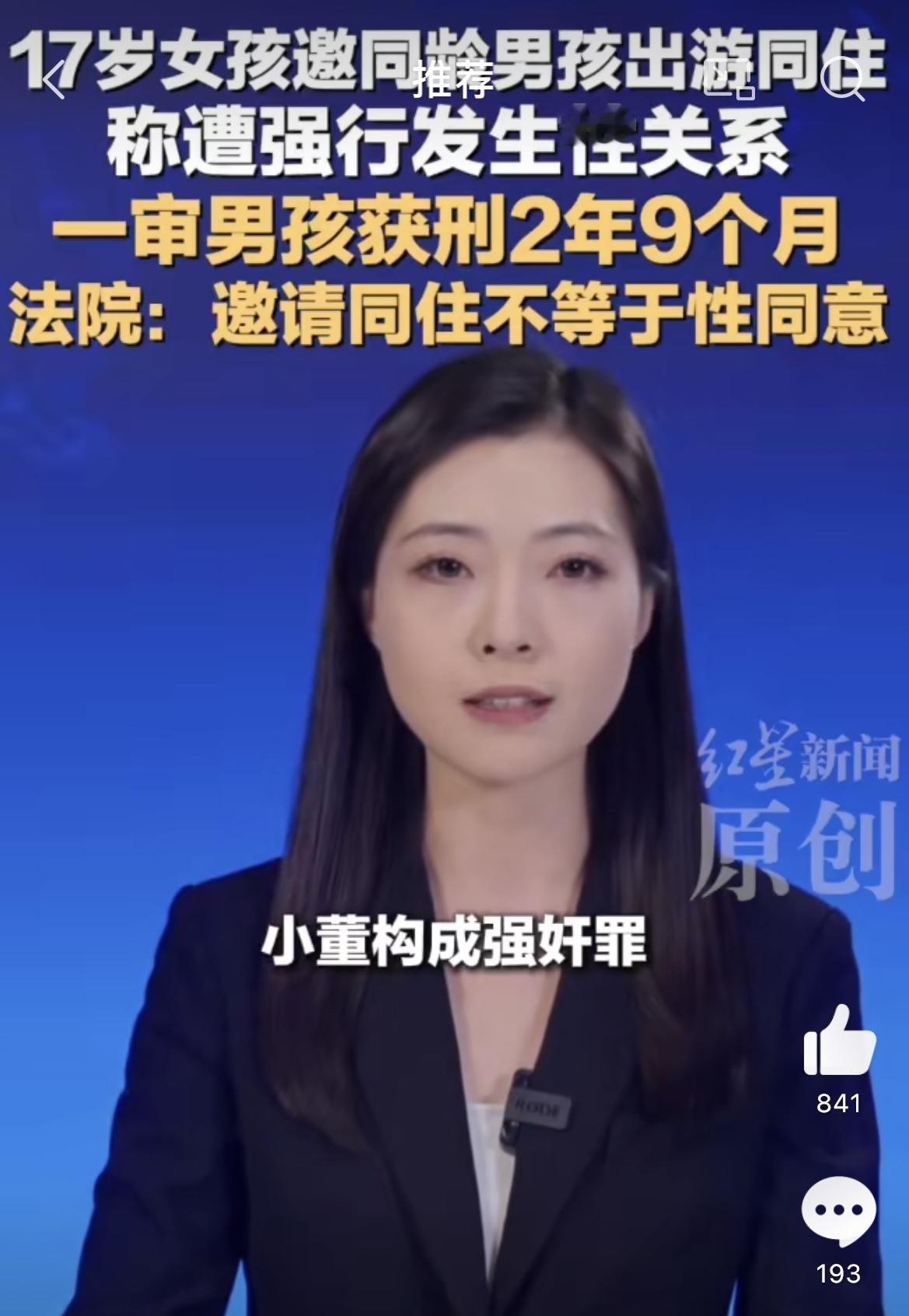 男生应邀住女友家被控强奸获刑。一对年轻情侣,俩人刚认识没多久,才十七八岁,很快就谈起了恋爱。本来是挺甜蜜的事儿,结果却闹上了法庭,还判了刑,让人看了心里五味杂陈。 事情是这样的,男生小董和女生丽丽(都是化名)约好一起去郑州玩,玩着玩着,丽丽就邀请小董到她家去住。小董也没多想,觉得女朋友都这么说了,那肯定没问题,就跟着去了。可没想到,住进去的当晚,事情就变了味。丽丽说,她本来和小董说好了要分房睡,但小董没遵守约定,晚上进了她的房间,强行和她发生了关系。她觉得自己受到了侵犯,第二天就报了警。 这事儿一出,小董就被警方带走了。他妈妈一听就急了,觉得特别冤枉,说人家闺女都主动邀请儿子去家里住,这不就等于默许了吗?再说儿子也没用暴力,怎么就成了强奸呢?而且更让家里人想不通的是,小董被拘留之后没多久,那个女生还给他发过微信,说“好想你”,这态度前后反差也太大了。家里人觉得,这不像是被侵犯后该有的反应,怀疑是不是有什么误会,甚至担心是不是女方事后反悔了。 可法院是怎么判的呢?一审判决下来,小董犯了强奸罪,判了两年九个月。这个结果一出来,很多人也懵了,包括一开始觉得“住家里就是同意”的那些人。但法院给出的理由很明确,也很重要:邀请一个人来家里住,哪怕是男女朋友关系,哪怕住在一个屋檐下,这都不等于对方就自动同意发生性关系。性同意必须是清晰、明确、自愿的,不能靠猜,也不能靠“我觉得你应该同意”来推断。你不能因为对方对你好,或者邀请你去家里,就觉得你可以越过那条最重要的底线。 这个案子之所以引起这么大关注,就是因为它戳中了很多人的认知盲区。以前总有人说“她都让你进房间了,不就是默认吗?”“都处对象了,发生点啥不是正常的?”这种想法其实是大错特错的。法律上从来没有“默认同意”这一说,哪怕是最亲密的关系,也必须尊重对方的身体自主权。今天你邀请我来住,不代表我今晚就要和你发生关系;今天我愿意牵手,不代表我明天就得接受亲吻。每一步都需要对方真正的、清醒的同意。 当然了,这个案子现在还没完,小董已经提起了上诉,说明他不认这个判决,希望有翻盘的机会。不管最后结果如何,这件事都给很多人提了个醒:在亲密关系里,边界感真的太重要了。好感不能代替尊重,热情也不能代替 consent。再亲近的人,也不能替对方做决定。希望这起事件能让更多人明白,真正的亲密,是建立在理解和尊重的基础上,而不是一厢情愿的“我觉得可以”。恋爱纠纷 来源:红星新闻