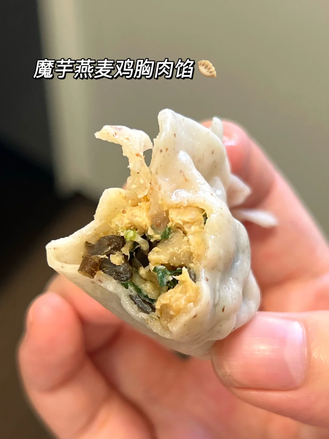 今日冬至 吃的是魔芋燕麦鸡胸肉馅轻卡🥟 饺子皮滑滑的,咬下去还带点Q弹,鸡胸肉馅料不柴,混着燕麦粒越嚼越香。男朋友跟网友学做成酸汤水饺,吃起来巨满足,热量比平时吃的饺子低一半左右,吃十几个都不带怕的😋