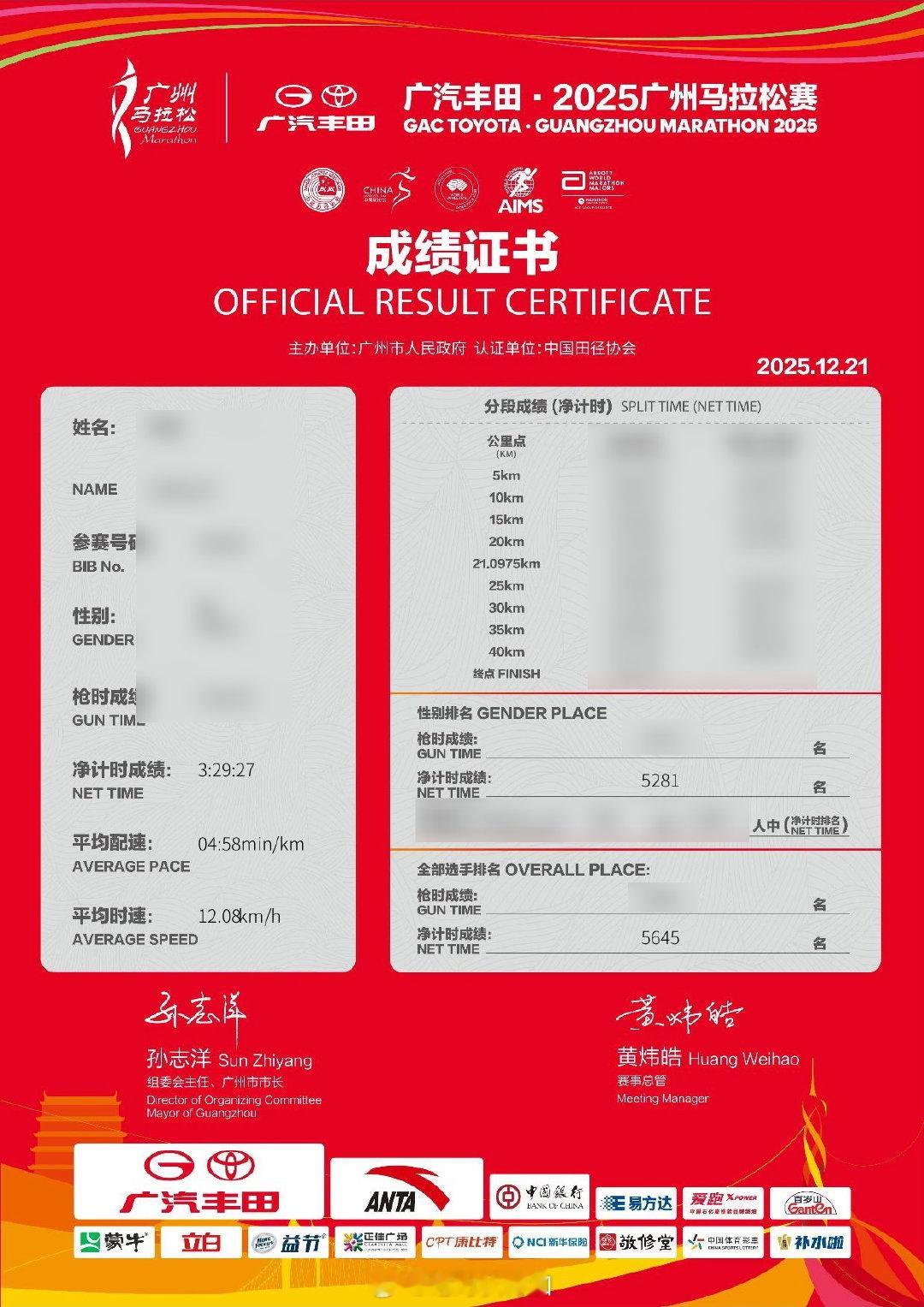 2025广州马拉松成绩证书已经出来了。1、速度完全可以接受。2、敢于公布总参赛人数(找不同性别、年龄段的人统计一下就好了)。同一个时分秒的净成绩排名还是有先后的,估计是用了小数点后的秒来排序了。广州马拉松 2025广州马拉松 赛事组织