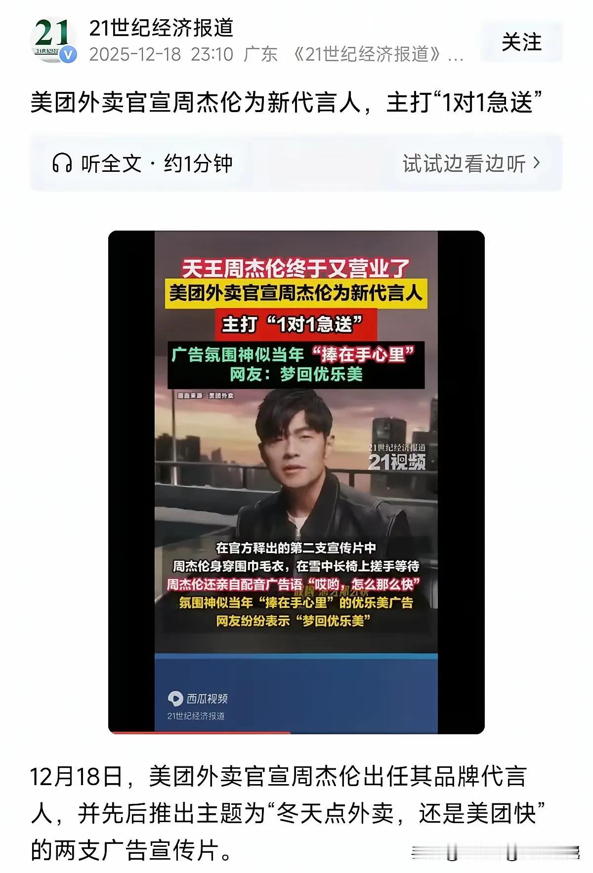 请顶流周杰伦代言是解决美团利润增长点的王牌吗? 美团近期官宣请了顶流周杰伦代言,美团第三季度亏160亿却仍然稳坐外卖行业的王座!有网友说,现在压力给到京东了,之前美团请黄龄,京东请了惠英红,现在美团更是请了顶流周杰伦,京东不请刘德华这个级别的代言也确实压不住啊! 8亿用户、1.5亿日订单峰值,在京东杀入外卖行业以来,美团并没有输,美团能赢到现在靠的从不是“周式情怀”,而是34分钟极速配送、24小时买药问诊、医保支付覆盖的各类贴心硬服务。 放大即时零售、全场景服务优势,深耕服务而非迷信流量,才是美团穿越周期的终极密码。请周杰伦代言只是锦上添花。