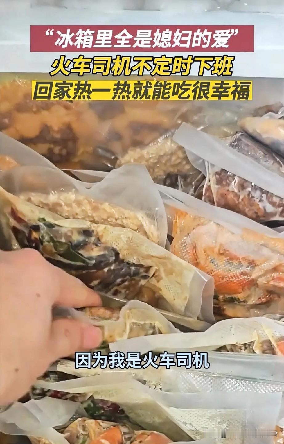 男子是火车司机,每天不定时下班,回家后也不一定有人做饭。媳妇怕他因此经常点外卖,或者不好好吃饭,所以就把菜提前做好,抽真空后放到冰箱里。 菜有肉有素,还有荤素搭配的,以及各种海鲜。不管男子什么时候下班回来,拿出来上锅适当热一下就可以吃了。 这样既方便,同时也保证了每天营养的摄入,对身体很好,男子感觉很幸福。 这不仅是一日三餐的照顾,更是一种朴素深沉的爱与牵挂。一袋袋包装好的饭菜背后,是对生活的用心和对家人的深情。 柴米油盐皆是爱,一个人愿意为你把日子过得这么细致,本身就是一件很浪漫的事。 希望我们都能珍惜这份被用心照顾的幸福,用温柔和责任去回应爱我们的人。 大家说是吧? 内容来源:烟台广播电视台 吉林