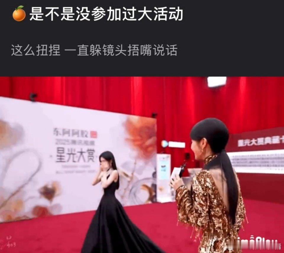 网友说鞠婧祎一直在躲镜头,是不是没参加过大活动?田曦薇看起来挺自然的,你们怎么看?