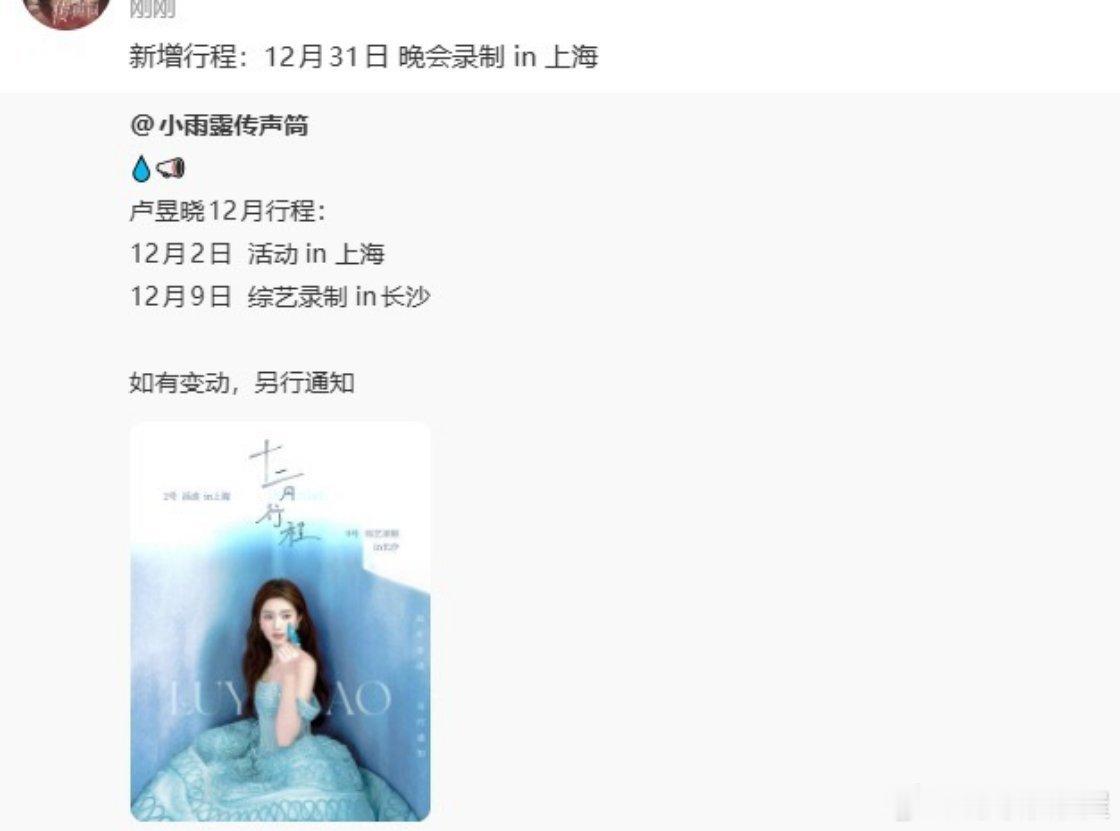 卢昱晓要去上海录制跨年晚会了,盲盒角色是明意