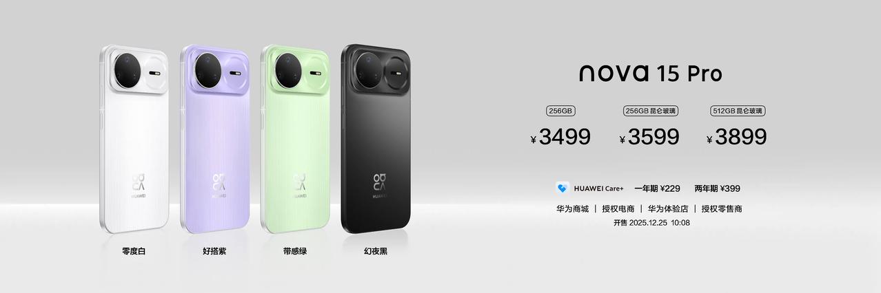 看完这次的nova 15系列发布会,大家肯定都会被这次的新机所吸引,因为搭载旗舰9系芯片的超级nova,售价2699元起,配置也有了很多升级。 就比如这次的外观,星耀双环设计全面焕新有着极高的辨识度,另外带感绿配色握在手中也比较的时尚与个性十足,会深受年轻人的喜欢,并且全系采用直屏搭配金属中框的设计,握持感十分扎实。其中,nova 15 Ultra厚度仅6.8mm,在保证轻薄的同时,又不失质感。影像上是实打实的硬件升级,前后双红枫镜头、全焦段覆盖,让拍照这件事变得既专业又简单。 而且鸿蒙6的智慧体验也不是噱头,AI沾色、动态海报名片、心情文字主题,都是能让日常使用变得更鲜活、更有趣的功能。续航这块,nova 15系列也不含糊。它搭载了nova史上最大容量硅负极大电池,而且还支持100W超级快充,Ultra版更是厉害,首次支持无线充电,nova 15系列将于12月25日正式开启首销,届时必定会再次掀起一股抢购热潮华为nova15正式发布 nova15首发行业唯一前后双红枫
