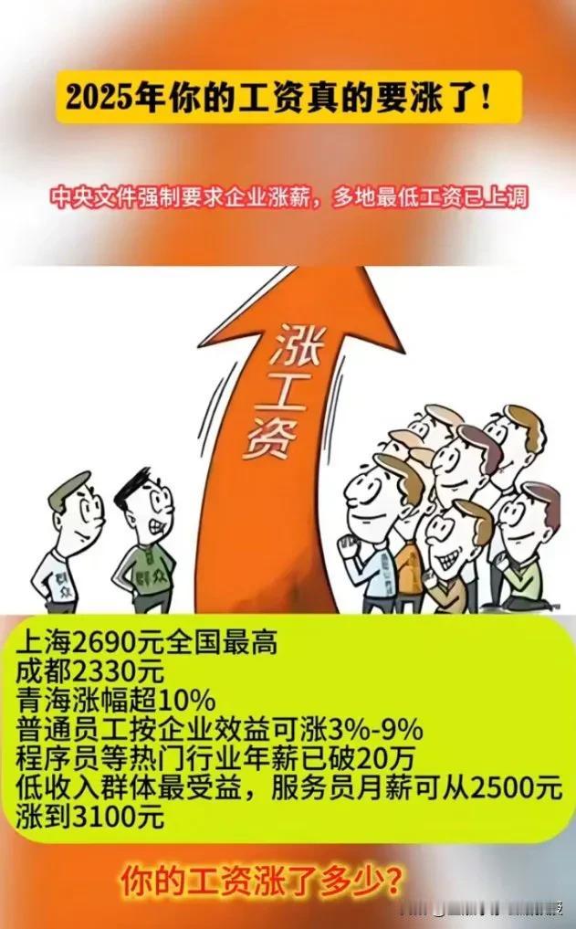 现在已经有不少头部企业带头落实涨工资了!前不久中央经济工作会议提出的“制定实施城乡居民增收计划”,不少企业已经在带头落地,比如比亚迪,字节,宁德时代。其中比亚迪的研发人员涨工资幅度在1000元到3200元不等。 之前大摩首席经济学家邢自强谈到给农民涨养老金的资金来源就提到,建议政府投资转型,将原来的“投资于物”,搞基建转变成“投资于人”。将大量资金用于改善民生,扩大内需,增加消费动能,可以提高GDP大概1个百分点。 现在头部企业已经悄悄开始给员工涨工资了,这是起到带头示范的作用,增收红利正逐步释放,你涨工资了吗?