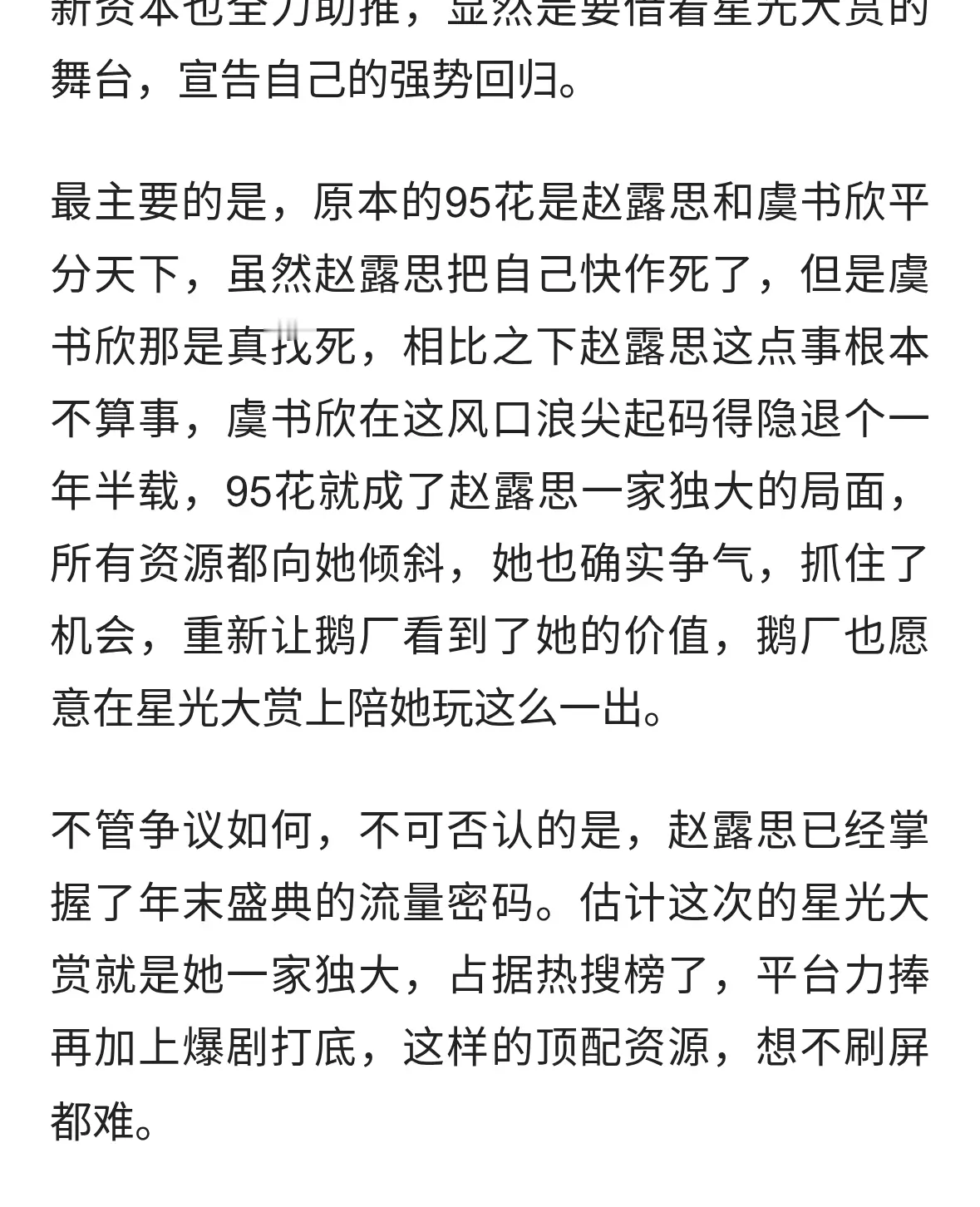 星光大赏是95花第一次正面较量过去一直是85花谁压轴,谁和谁不同框,谁给谁抬咖