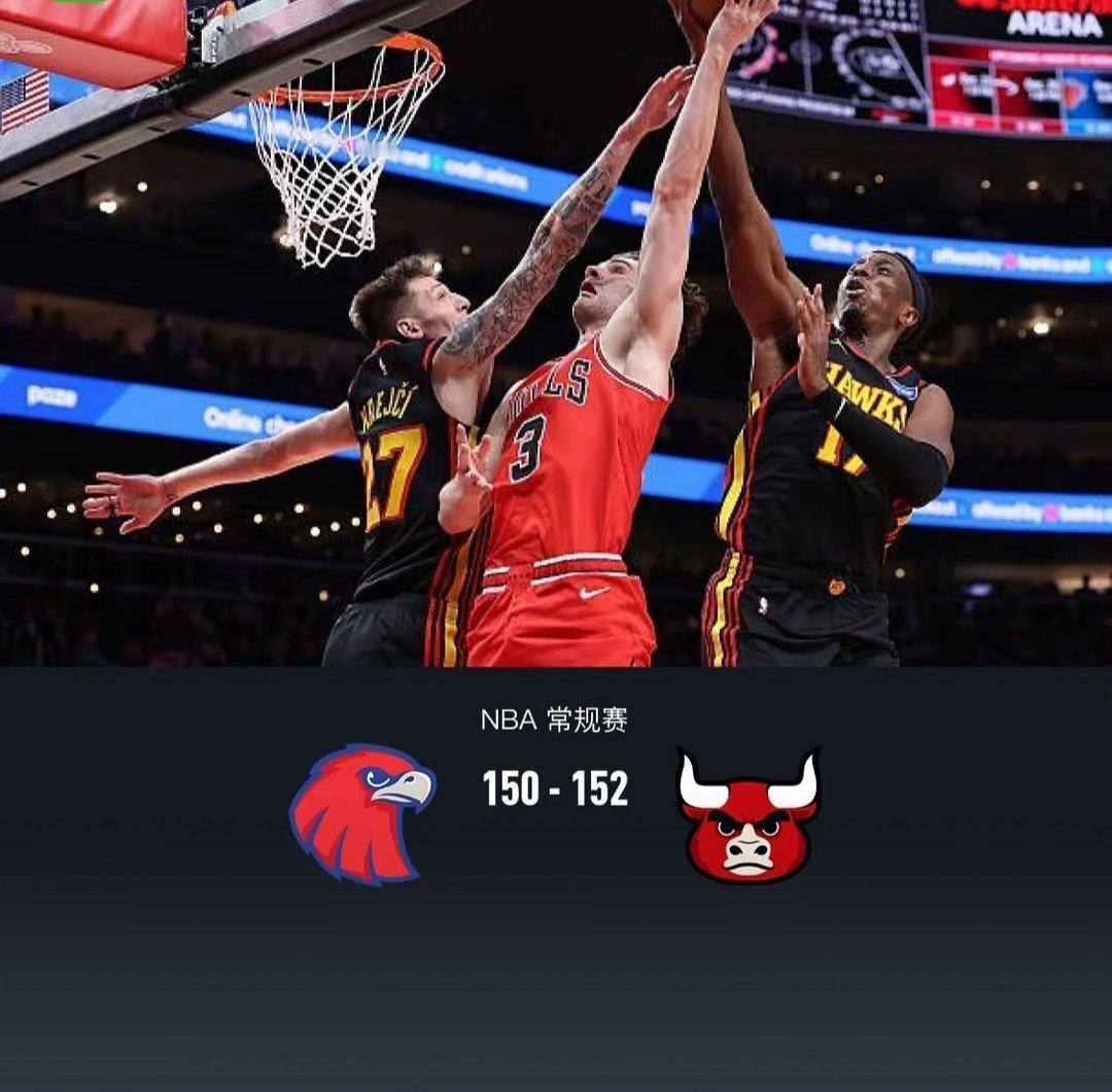公牛9人上双152-150险胜老鹰,杰伦-约翰逊&特雷-杨空砍71分NBA亚特兰大老鹰 北京时间12月22日NBA 常规赛,亚特兰大老鹰对阵芝加哥公牛。半场老鹰73-83公牛,最终老鹰150-152公牛。亚特兰大老鹰杰伦-约翰逊36分11板9助,特雷-杨35分1板9助;芝加哥公牛布泽利斯28分3板,科比-怀特21分2板5助。赛况第一节老鹰奥孔古拿下15分,公牛奥科罗拿下10分,首节战罢老鹰38-38公牛第二节老鹰特雷-杨拿下10分,公牛布泽利斯拿下9分,半场结束老鹰73-83落后公牛第三节老鹰特雷-杨拿下9分,公牛布泽利斯拿下7分,第三节结束老鹰115-116落后公牛第四节老鹰杰伦-约翰逊拿下13分,公牛科比-怀特拿下11分,最终老鹰150-152不敌公牛球员全场数据亚特兰大老鹰杰伦-约翰逊36分11板9助,特雷-杨35分1板9助,奥孔古23分7板6助1断1帽;芝加哥公牛布泽利斯28分3板1断2帽,科比-怀特21分2板5助,约什-吉迪19分9板12助2断。首发阵容亚特兰大老鹰:杰伦-约翰逊,特雷-杨,奥孔古,里萨谢,戴森-丹尼尔斯;芝加哥公牛:布泽利斯,科比-怀特,约什-吉迪,奥科罗,武切维奇。