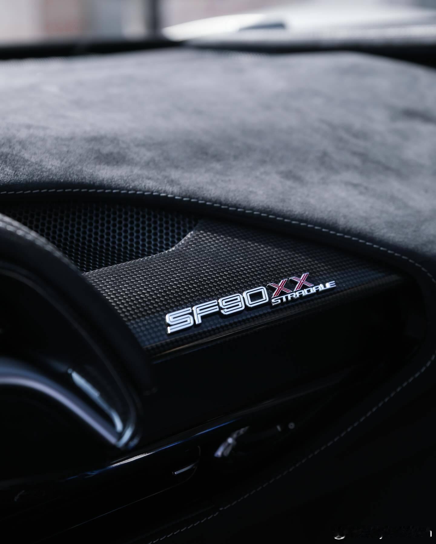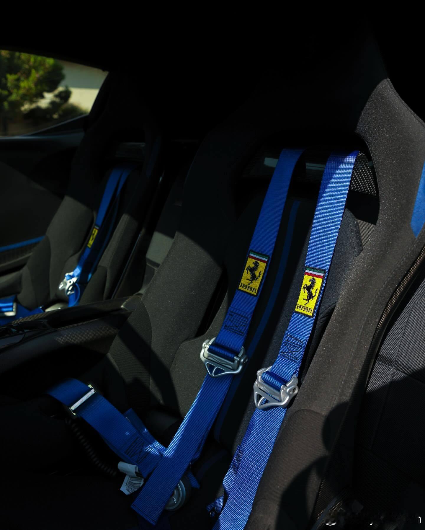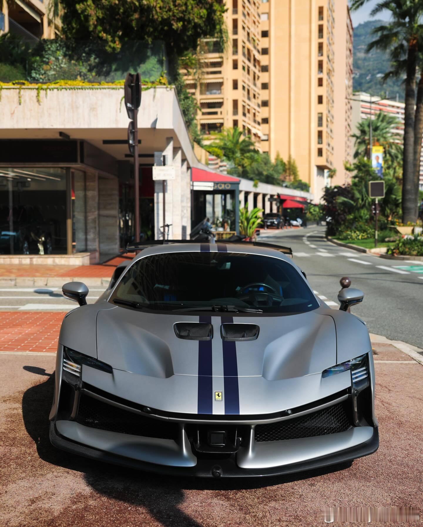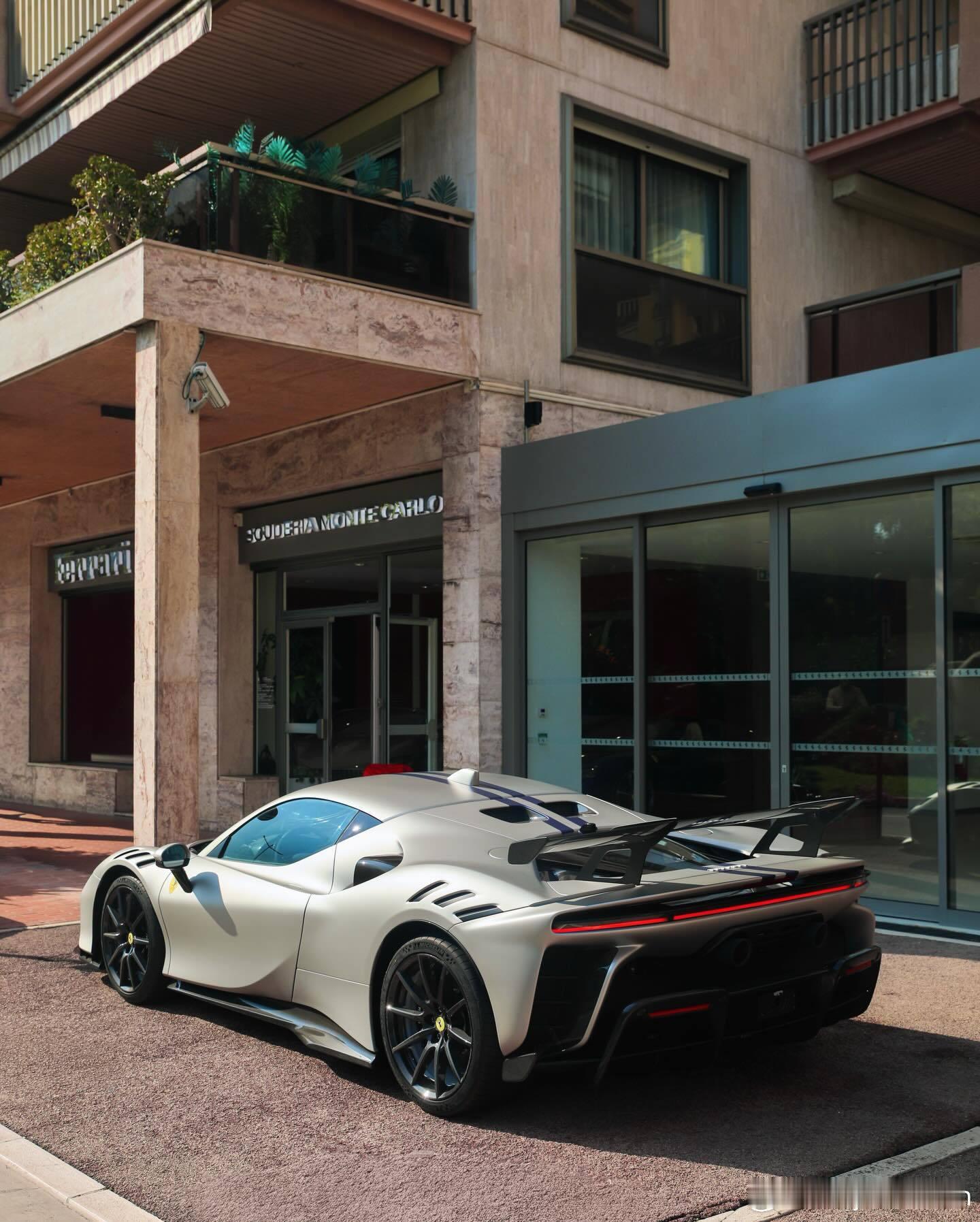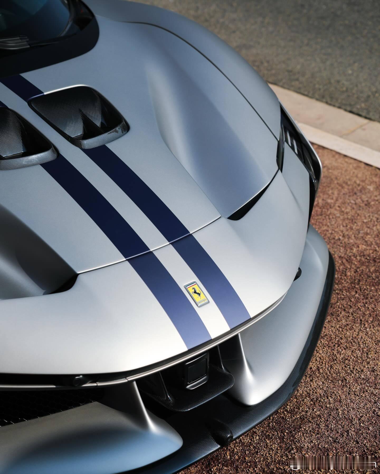 外观配色为Alluminio Opaco,搭配两条长蓝色条纹,外观方面还选择了碳纤维轮毂和漆盾,此外还选配了上色车顶,内饰应该是Nero Alcantara。交付于位于摩纳哥的Ferrari Scuderia Monte-Carlo,但车主是一位日本人,他的限量版基本都在摩纳哥交付。图片来自