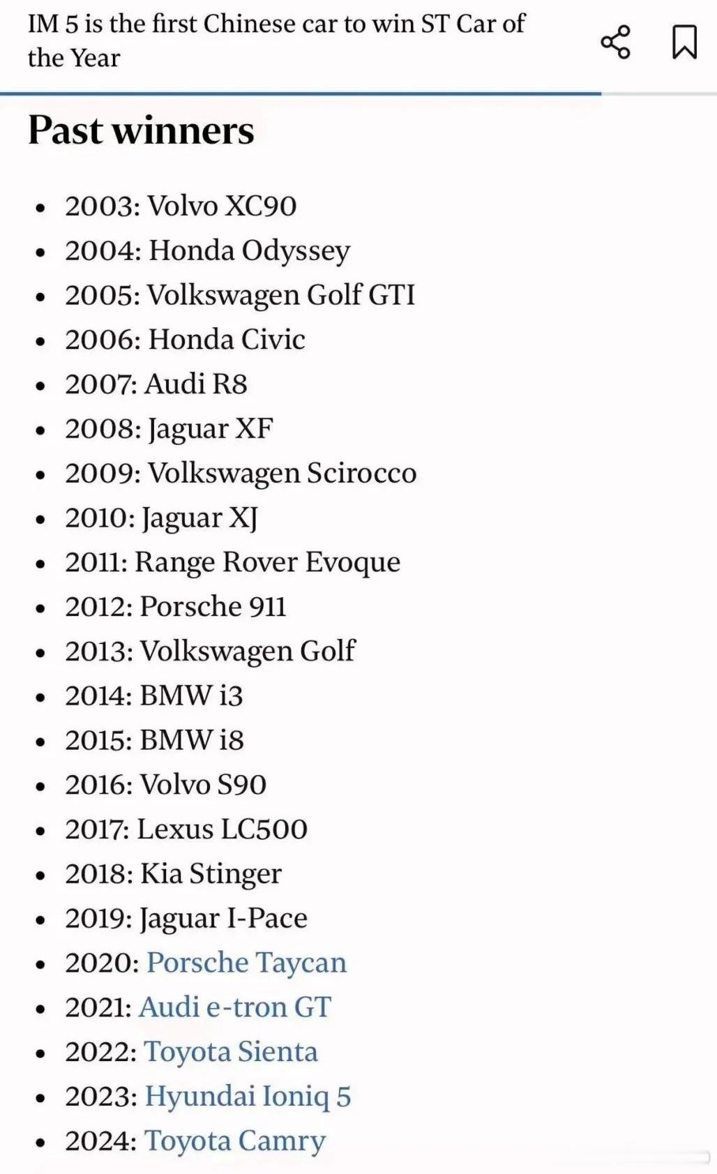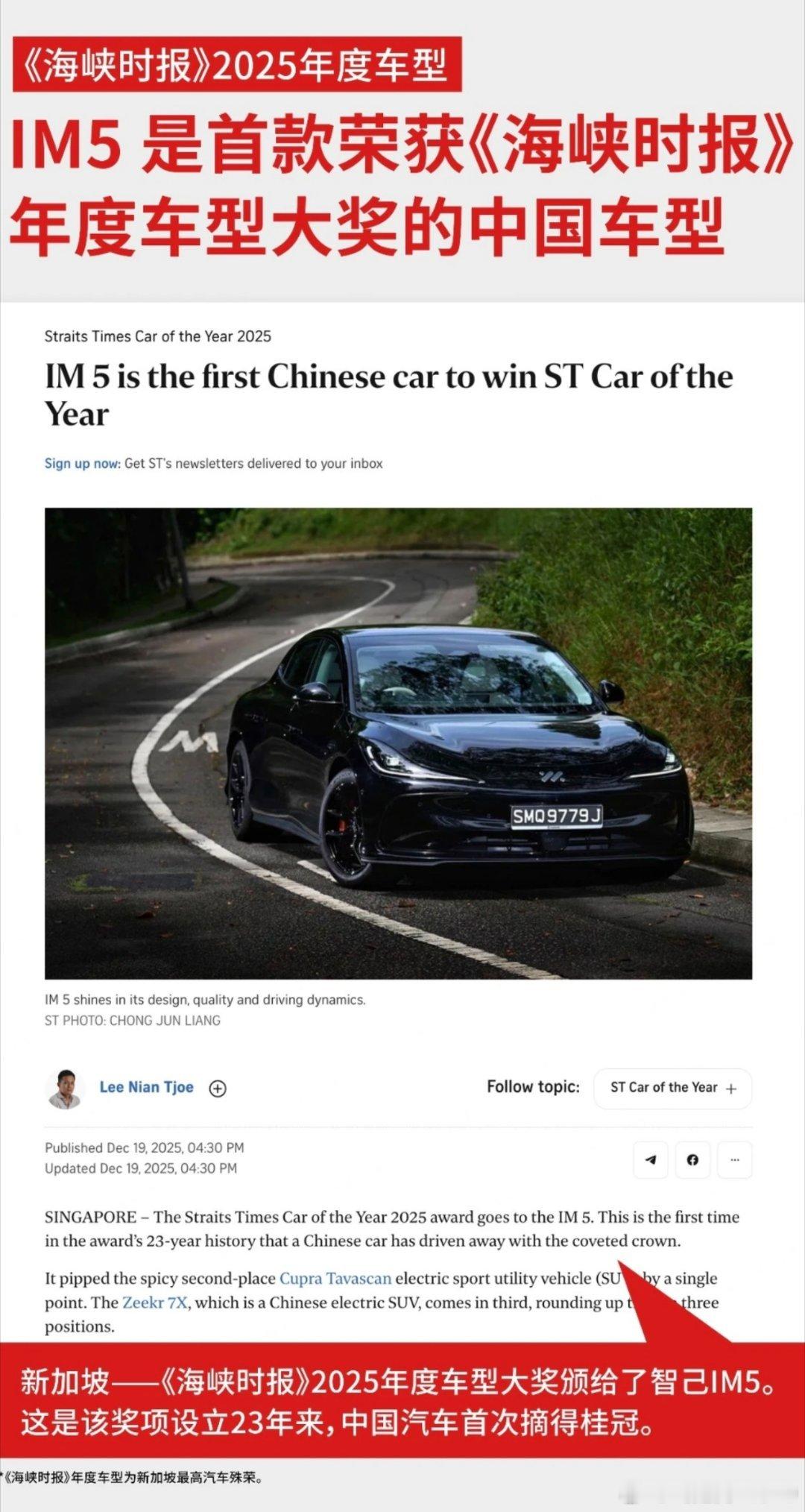 智己L6在新加坡获得了年度车型和众多经典车型一起被录入史册只不过在新加坡叫做 IM5