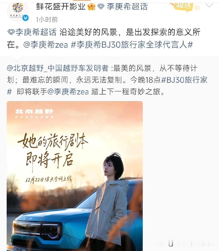 徐静蕾旗下的两个小🌸,资源差距挺大的。 向涵之接的都是小成本的古偶剧,好一点的剧就只能演配角。 电影更是还没演过一部。连客串都没机会。去年一年都没进组,就参加了五六个活动。 李庚希却恰恰相反。 一年到头忙的不可开交,电影电视两手抓,几乎没有断档的时间,接的还都是超级好的项目。 如今又拿下了汽车代言,还是最高title代言人。 这资源别说同公司的向涵之了,就是当红95🌸们,都望尘莫及。 有点不解,为什么两个人的资源差这么大?