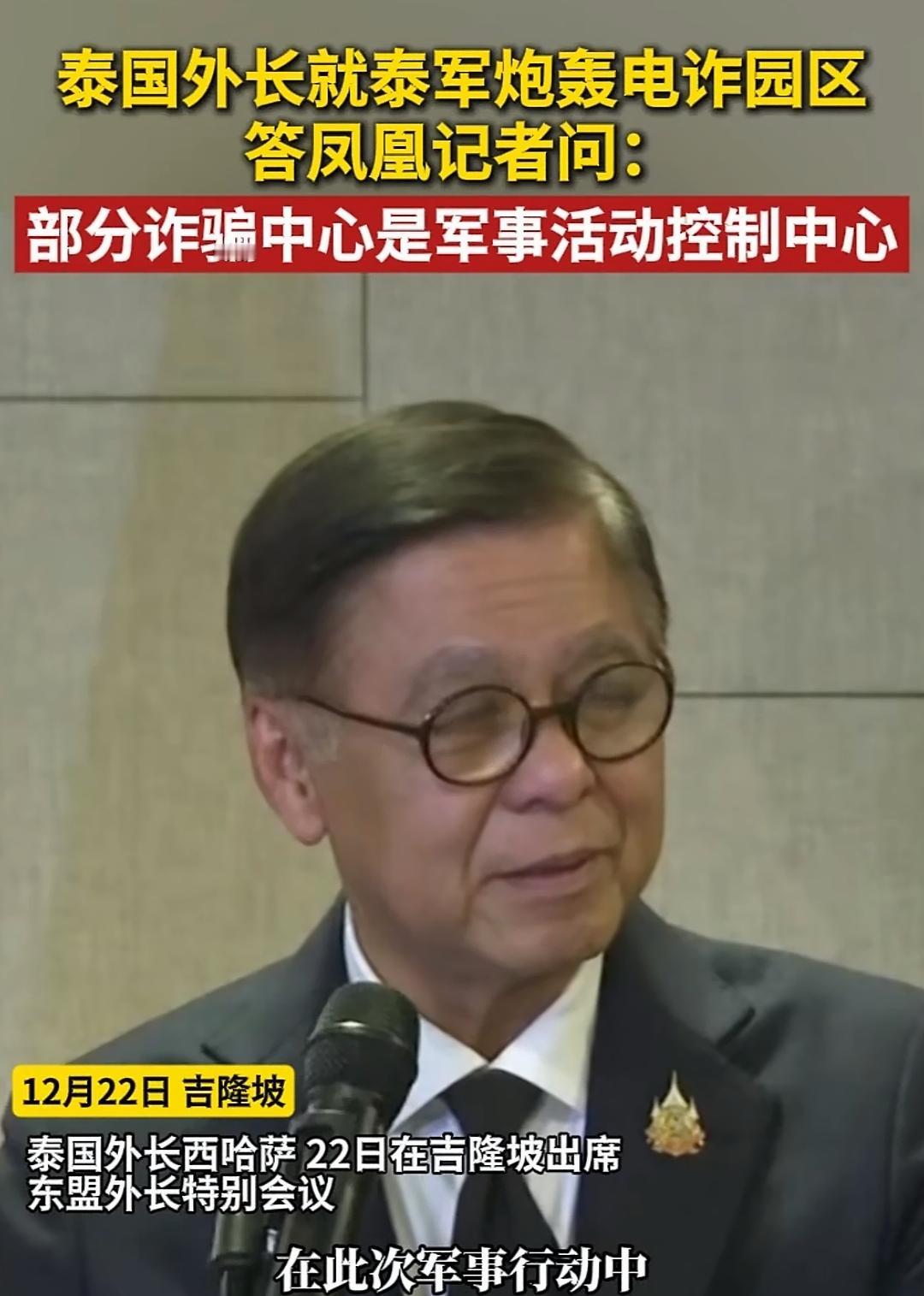 泰国外长回答问题很有条理! 凤凰卫视问,你确认那些诈骗中心是藏有武器弹药? 泰国外长说:“他们的目标是打击军事目标,并非简单的诈骗中心。关于打击诈骗,他们有一套与柬埔寨一起的合作机制”, 这说明了两个问题: 1 本身就是诈骗中心,应该被打击。 2 这其中藏有灰色业务,并且储存武器弹药,你说跟柬埔寨政府有没有关系? 结论:不管基于哪一条,都应该打理,没有问题!