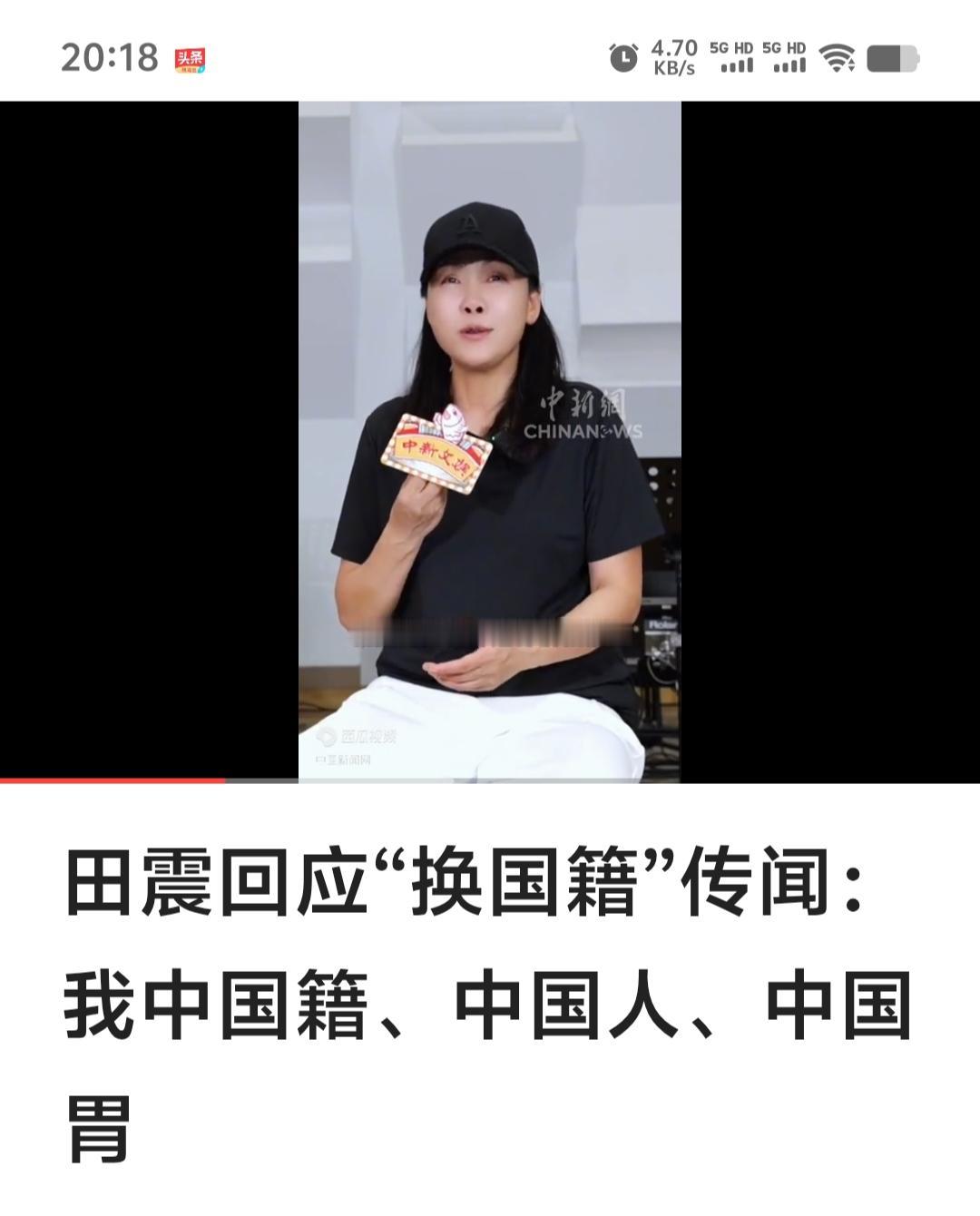 田震回应“换国籍”传闻:我中国籍、中国人、中国胃田震这一番掷地有声的回应,瞬间在网络上引发了轩然大波。网友们纷纷为她坦荡的态度点赞,在评论区里满是对她的支持与认可。 这些年,娱乐圈里“换国籍”的传闻屡见不鲜,不少明星深陷舆论漩涡。而田震这次面对无端的“换国籍”传闻,没有选择沉默,而是以一种直白且坚定的方式表明立场。她那一句“中国胃”,更是生动形象地展现出她对祖国深深的眷恋和热爱。 对于田震来说,音乐一直是她与祖国、与歌迷连接的桥梁。她那些经典的歌曲,如《风雨彩虹铿锵玫瑰》等,激励着无数人在困境中勇往直前。她用歌声传递着正能量,也用实际行动诠释着爱国情怀。 而这次回应传闻,不仅是对不实消息的有力回击,更是她爱国精神的又一次彰显。相信在未来,田震会继续用她独特的嗓音和音乐才华,为大家带来更多的精彩。也希望那些制造不实传闻的人能适可而止,尊重每一位用作品说话的艺人。