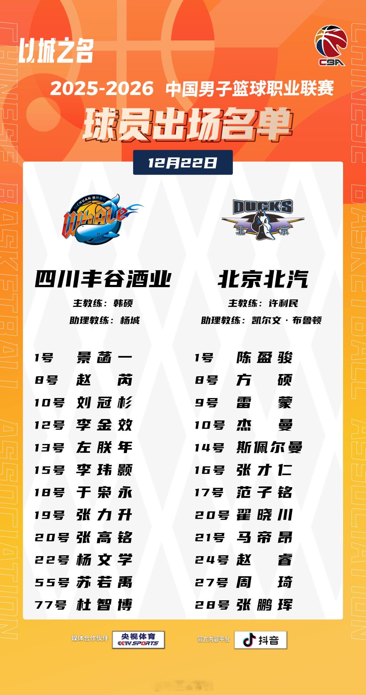 四川男篮vs北京男篮 小张进入名单,注意,本场四节后有潜力赛,请关注小将们的表现