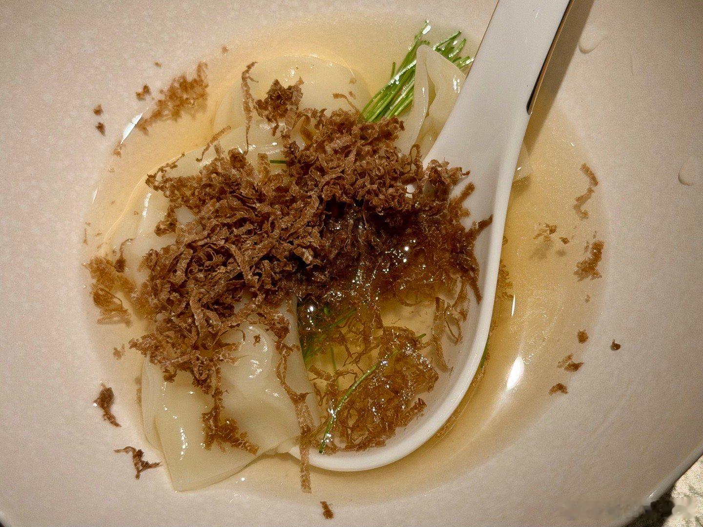 在东京吃熊宴,奇迹的一餐。今年日本的年度汉字是“熊”,那必须要吃美味的熊肉,在熊泛滥的日本,吃熊肉是合法的。提前几个月和东京的 La Shisen 餐厅预约了长野月轮熊的熊掌、小熊肉和黄金熊胆。长野的熊比北海道的要小,但是质量要高很多。前菜是绍兴酒糟北海道安康鱼肝慕斯配四川鱼子酱,味道鲜美,然后是鸡腿和北海道鹿舌,这个季节吃鹿肉很好,鹿舌也比牛舌软糯。第三道是柚子口水鹿儿岛黑毛和牛呷哺呷哺,牛肉香浓,不错。图2是开水白菜的饺子汤,用长野鸡和金华火腿吊的开水白菜清汤,配富山县白虾馄饨,先喝汤,再吃馄饨,再加阿尔巴白松露,三种味道,三种鲜美。图3是小火煨了三天的蟹粉鱼翅,很好吃。之后是乳鸽,直接炸出来的,水分锁在里面。图4是11公斤小熊的粉蒸肉,虽然肥,但是嫩而浓香。图5是佛跳墙,里面是黑猪肉里脊、干贝、鱼肚、鱼翅和鲍鱼等材料,不加盐,长时间熬出浓香。图6是现炒小熊回锅肉,微微辣,很好吃。图1是我和熊掌合影,这是成年月轮熊的右掌,做了7天,用三种清汤反复炖煮,味道出类拔萃,香浓美味,毫无腥气,入口即化,真是太上乘了。图7是纯纯螃蟹味的米饭,用蟹壳干贝做汤底做的,加蟹肉和蟹黄,配鳕鱼白子麻婆豆腐,太好吃了。之后是极为罕见的月轮熊金胆,看着黑乎乎的,拿灯一照显出真身,现场捣碎,胆粉散发着闪闪金光,令人惊叹。最后的甜品是桂花桃胶银耳汤。今年最佳美食谢田的非米其林之旅