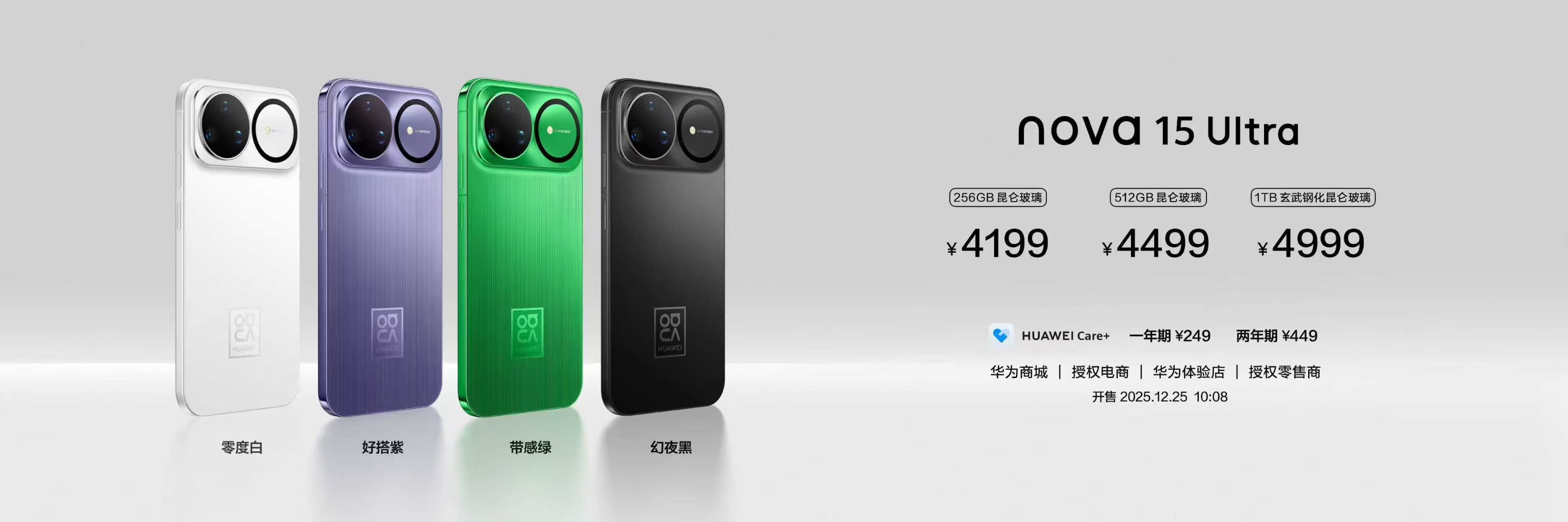 华为nova15系列发布会看完了,预算不够买Mate80,可以冲这个配置这块,麒麟8020,此外还有第二代红枫下放、双模卫星通信下放,新机还内置 6000mAh 电池,支持 100W 快充,基本上就是上一代Pro版本的配置,2699元起售加量不加价。然后Pro和Ultra版本的升级点,主要集中在性能和影像上,Ultra机型首发前后双红枫影像系统,以及升级为麒麟 9010S 处理器,同时Pro版本用的也是9010s,不过超广角微距镜头降级到 1300 万像素,砍掉了主摄可变光圈、潜望长焦,起售价3499起,Ultra为4199起步。个人建议,如果不玩游戏的话,其实nova系列最香的还是标准版机型,不过想要体验完全体的红枫影像,自然上Ultra机型是最好的,但是4199的价格为啥不直接冲mate80呢,不过整体来看,这一代nova15对比上一代依旧诚意满满。