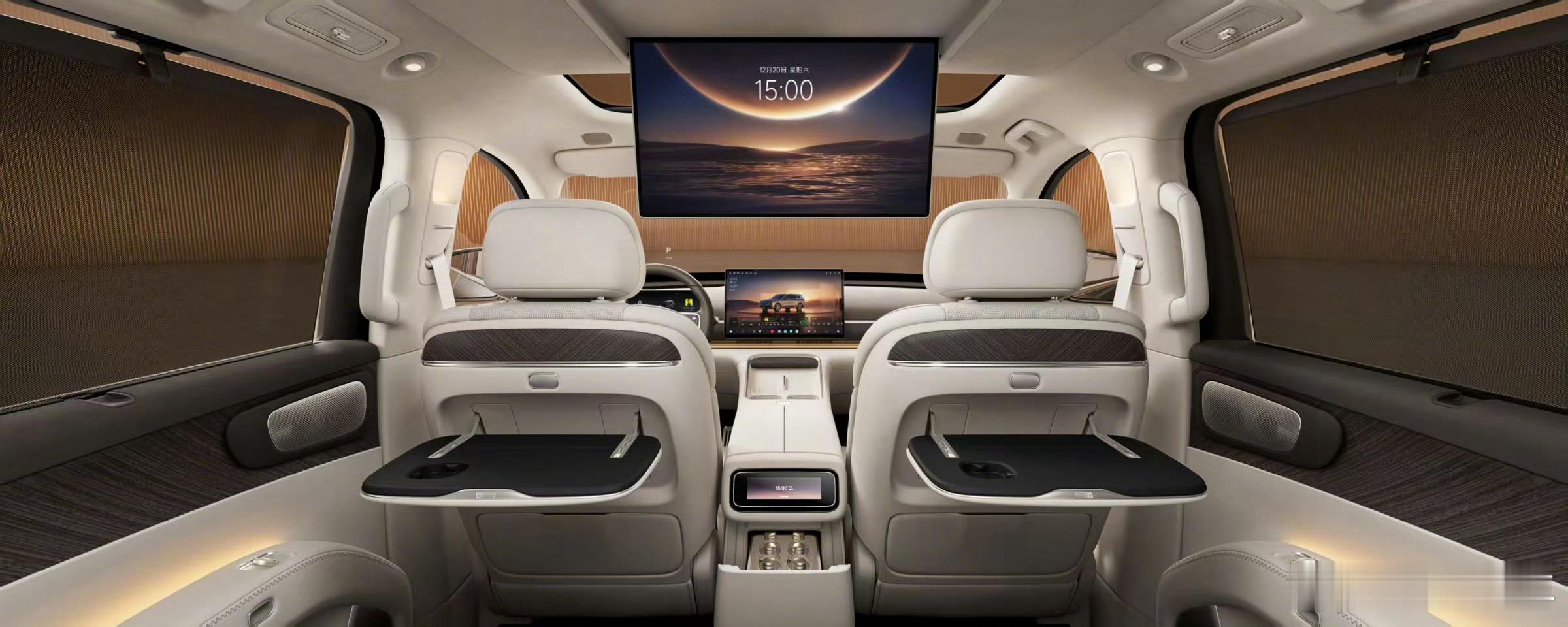 零跑D19的内饰,中规中矩,空间没问题,二排两个桌板,三排还有独立扶手,这个值得