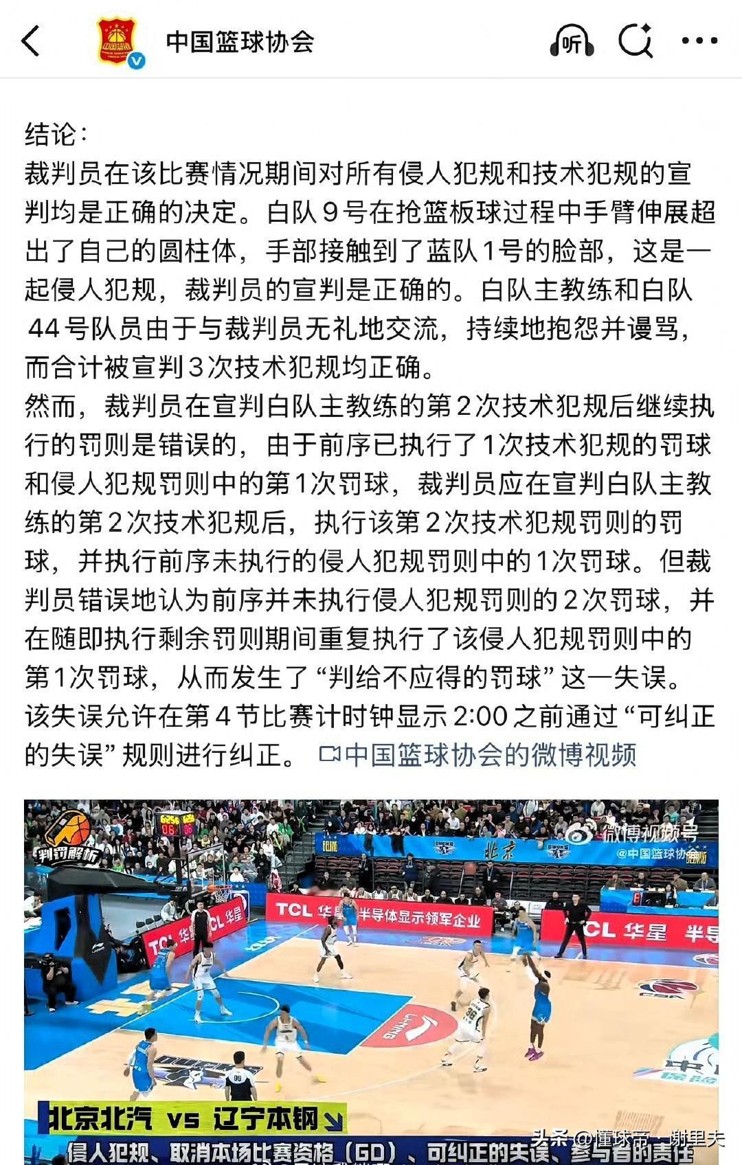 杨鸣受委屈了!篮协承认裁判错误,亲自发文澄清,99号裁判员6次罚球是错误!属于“判给不应得的罚球”失误的,这下给辽篮主帅被驱逐事件做出定论,恕我直言,单独看一个吹罚,基本都没大问题,这就是艺术,cba裁判其实水平并不比fiba差,问题是脑子里有太多“人情世故”,不会像欧洲和nba裁判一样在场上主动和球员和教练员沟通,总是一副铁面无私,油盐不进的样子,吹罚缺乏艺术性