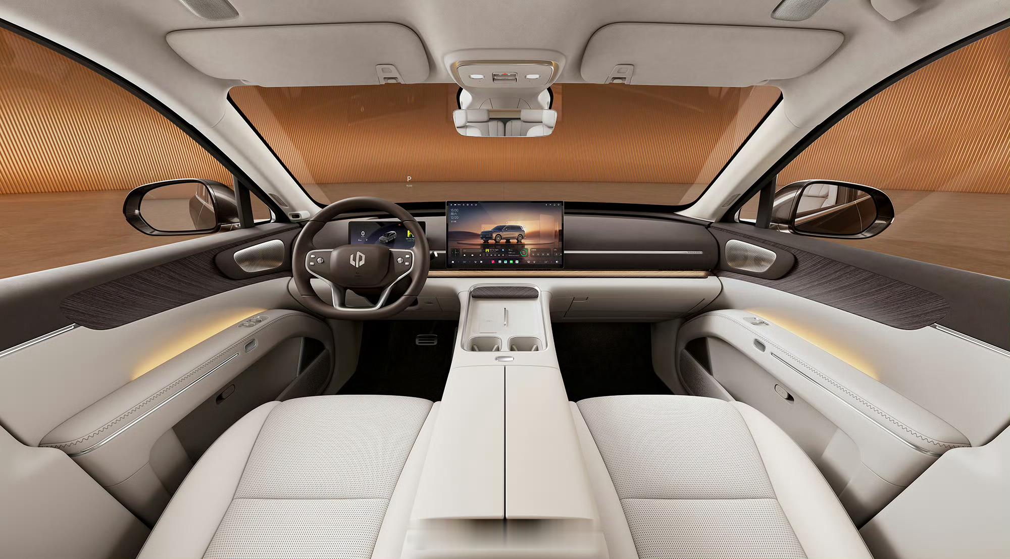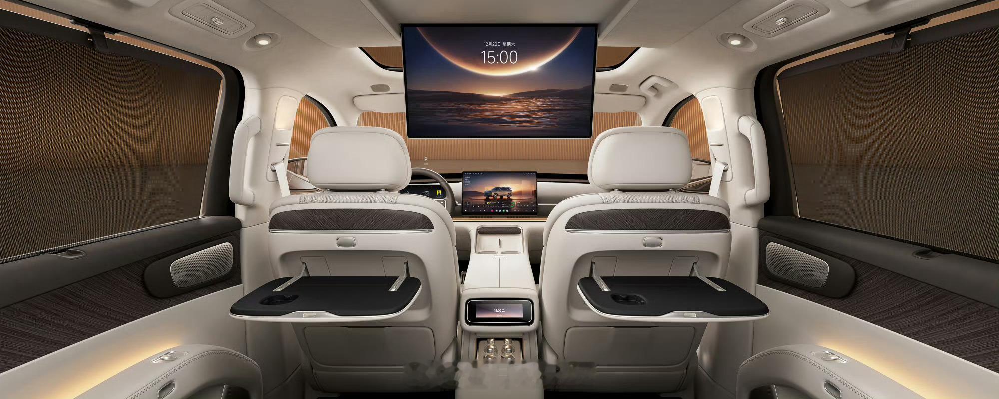零跑D19 内饰是很清爽的家庭风,材质、配色都很温馨居家;中排座椅尺寸克制,给后排乘客进出留下很宽的过道。能看出这台车清晰的大家庭用车的定位,而不是既要又要两头不靠的纠结体,点赞~最后,渲染图的靠背小桌板没有警示贴纸,希望商品车上不要漏掉这个~大v聊车