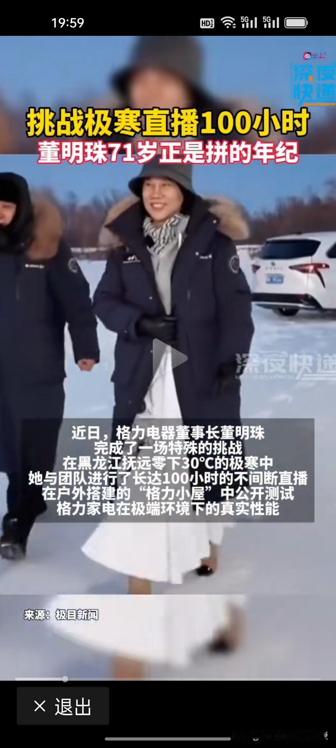 71岁的董明珠,带着格力电器团队一年还要做三次极限挑战,现场直播,真的对董明珠刮目相看。 这次,董明珠又带着格力空调来到了零下30度的黑龙江抚远,直播100小时,测试格力家电在这样极端气候环境下的性能。今年董明珠已经完成了火焰山高温,黄河口净水的两项家电的极限测试。 之前看到雷军带领团队在黑河对小米SU7进行冬测,真没想到家电还需要在这样的极端天气下测试,这是其他家电企业从来没看到过的。财务自由的董明珠71岁还这么拼,确实不容易。 董明珠在直播中还说了,自家产品绝不用铝管代替铜管,这一波直播营销确实让消费者口服心服。71岁的董明珠还能踏遍冰火极限,以硬核技术立诺、用实干精神代言,格力空调的潜在销量预计会创新高啊!