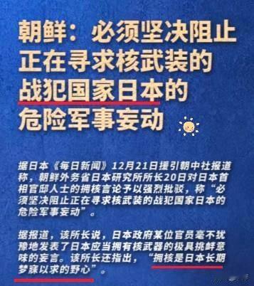 朝鲜这次直接把枪口顶在了日本脑门上针对日本高官的“拥核”言论 平壤根本没走外交程序 直接甩出“战犯国家”和“核浩劫”两个死刑判决 这意思是明确的: 别指望有了核武能搞平衡 只要你敢往弹头上拧一颗螺丝 朝鲜的导弹就会先一步把日本岛变成无人区 日本一边顶着“唯一核爆受害国”的名头 一边让高官公然喊“该拥核” 还试探核潜艇研发这野心藏都藏不住 朝鲜的硬气恰恰戳中了这种两面派的软肋 对付突破底线的试探委婉没用 就得用最直白的威慑划红线 国家立足从不是靠财富多少 而是敢对危险挑衅说“不”的底气 朝鲜不玩文字游戏 不给对手留遐想空间 这种“说一不二”的亮剑精神 才是小国护安全的智慧 你们觉得朝鲜这波强硬表态能按住日本的拥核野心吗