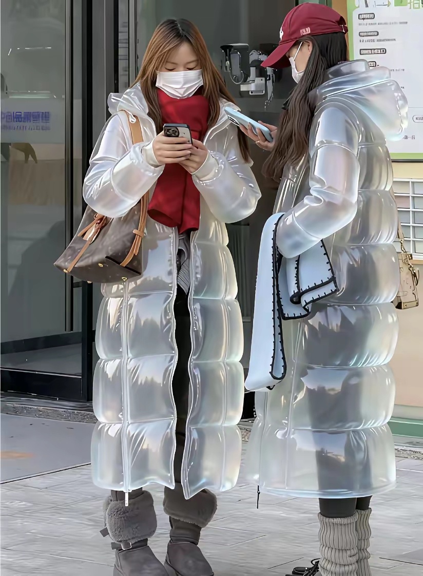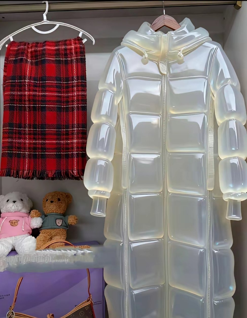 难道这个冬天透明羽绒服,已经大火了吗?还是AI图???话说这个衣服保暖不保暖呀?会不会很容易扎漏气啊#羽绒服##透明羽绒服#