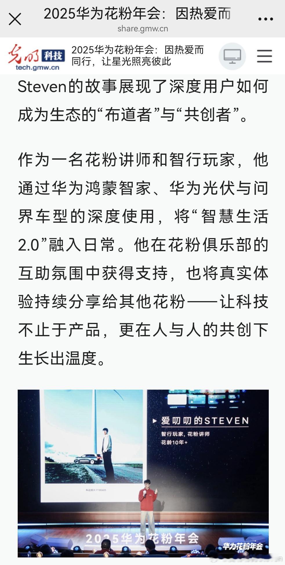 上了官媒中国青年网(中青网)和光明日报(光明网),转载了我在2025华为花粉年会