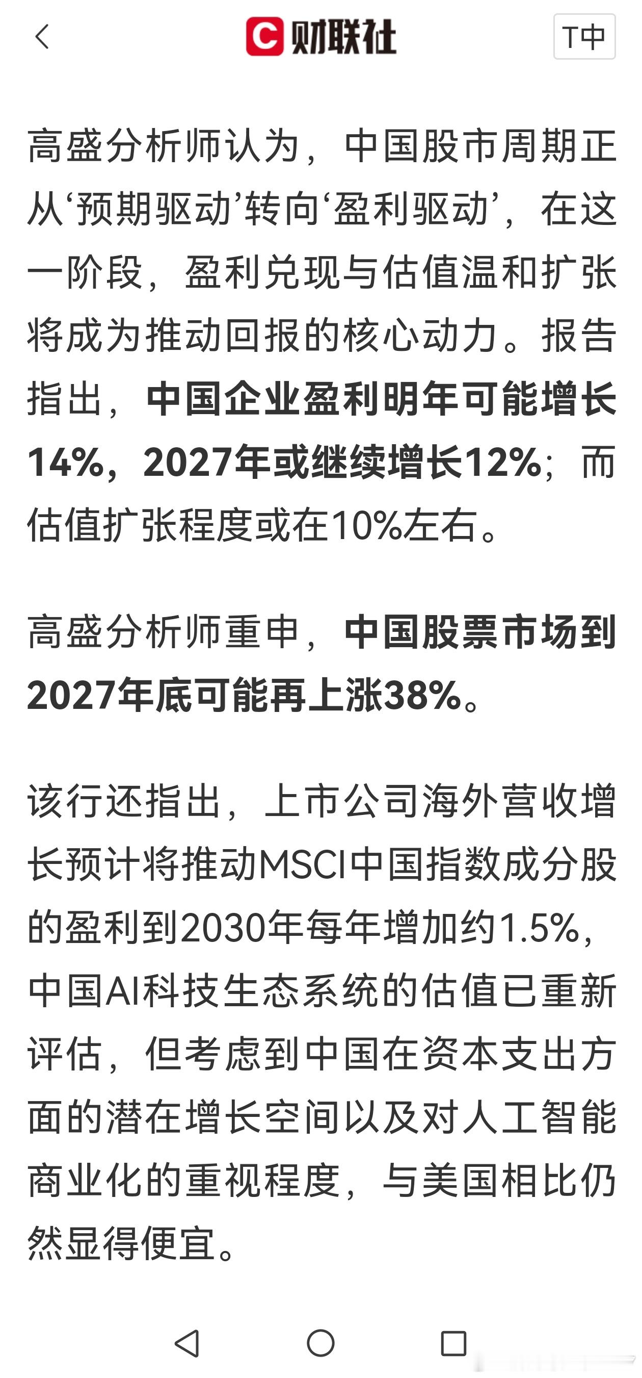 中国股票又获唱多!高盛:明年将继续“牛” 到2027年底有望再涨38%明年看好,27年不好说。