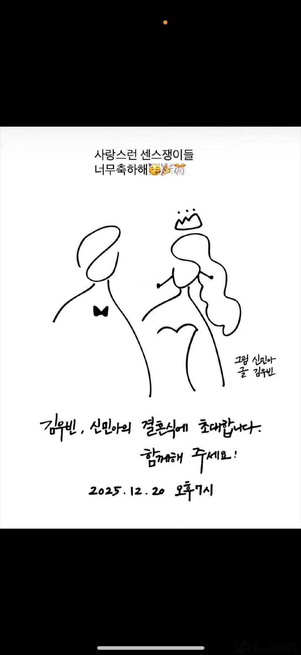 金宇彬申敏儿公开婚礼现场照金宇彬与申敏儿公开唯一一组官方婚礼现场照。照片中两人在首尔初雪中牵手回眸,申敏儿身穿雪花刺绣婚纱,金宇彬则是一身黑色燕尾服,画面唯美浪漫,被网友赞为“韩剧级别的童话”。这场婚礼选择在金宇彬抗癌成功六周年纪念日举行,意义非凡。