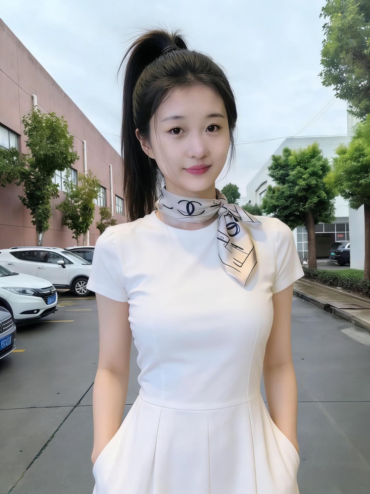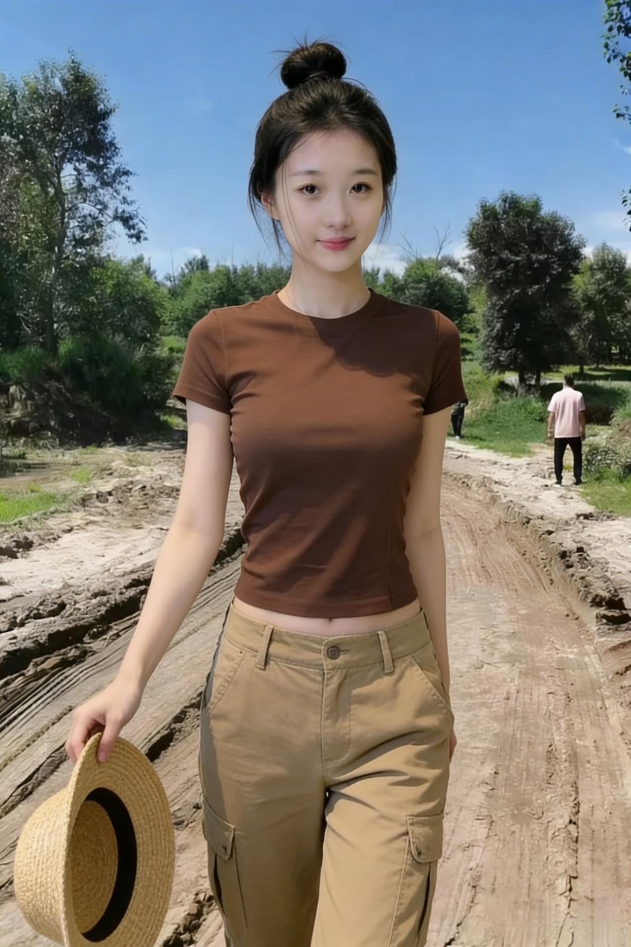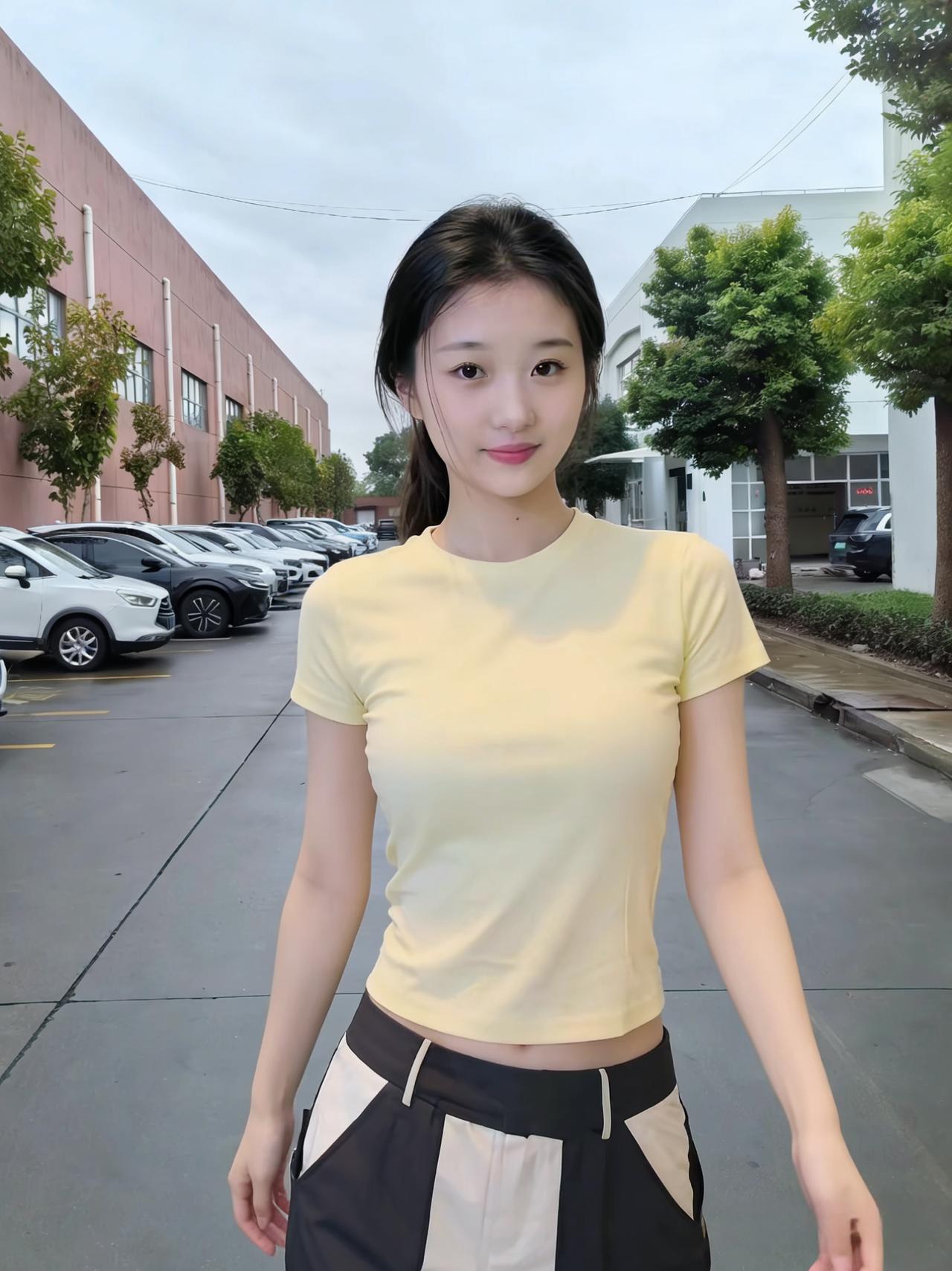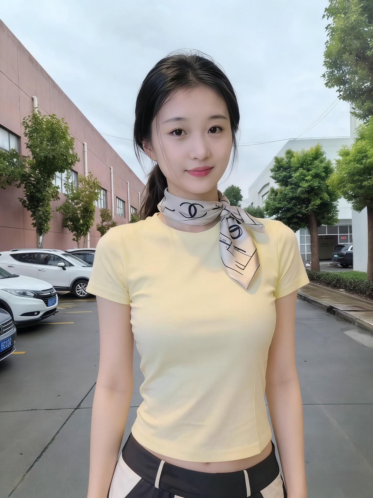 青空裁一片云絮落在肩头,黄衫洇着夏的温柔 黛瓦流水绕着身后的巷口,眸光轻扬,撞碎了涟漪的皱 红环叠成的心阶伸向天际,草叶在风里摇着细碎的铃 她站在晴色里,像刚摘的枇杷,甜软了半程光景 ~ 泥路碾着车辙,丝巾系着香,步履踏过尘沙的荒 白车列队在厂房外的路旁,马尾扬起,抖落了俗世的忙 素白裙裾兜着风的形状,丝巾缠颈,绾住一寸精致的光 黄衫又裹住肩,衣角轻挑,露一截腰腹的俏 ~ 田埂的路向远方弯,屋舍在绿意里眠,她走得慢,像云飘在人间 红心跳动的轮廓里,她的笑,是未拆封的蜜 厂房前的柏油路,树影筛着光,丝巾再绕颈,黄衫熨帖着胸膛 云在换,景在迁,她的眼,始终盛着清浅的甜 ~ 檐角的瓦,塘里的水,夏风吻过她的发尾 心形的架,山野的花,她站成一幅不褪色的画 泥路的尘,远方的车,丝巾系着优雅,步履未歇 厂区的车,街边的树,白裙藏住心事,黄衫袒露温柔 ~ 田垄的青,屋瓦的灰,她的身影,揉碎了烟火的味 红环的艳,晴空的蓝,她的眸光,亮过星子的斑 柏油的硬,树影的软,丝巾轻晃,摇落了时光的慢 黄衫的暖,白裙的净,她的模样,是人间的晴 ~ 流水的缓,风的急,她站在那里,便成了诗的序 草的青,沙的黄,她走过的路,都沾了温柔的香 车的鸣,叶的响,她的笑,压过了尘世的嚷 屋的旧,田的新,她的脚步,轻踩在岁月的纹 ~ 环的红,天的蓝,她的侧脸,映着云的闲 路的直,影的斜,她的身影,漫过了季节的阶 衫的短,裙的长,她的姿态,是自在的章 云的聚,风的散,她的目光,始终未乱 ~ 水的皱,心的圆,她站在帧里,成了永恒的甜 沙的粗,丝的软,她的温柔,融了世间的寒 树的密,天的宽,她的身影,轻如蝶的欢 厂的冷,花的暖,她的笑,化开了钢筋的板 ~ 田的绿,衫的黄,她的气息,染了麦浪的香 环的叠,光的漫,她的模样,刻在时光的幔 路的平,泥的坎,她的步履,踏碎了愁的坛 裙的白,巾的纹,她的精致,藏在细节的门 ~ 衫的黄,眸的清,她的存在,是人间的星 风的轻,云的悠,她的故事,在帧里慢慢流 景的换,影的留,她的温柔,从未被偷走 晴的天,阴的昼,她站在那里,便是春的候 ~ 尘的扬,叶的落,她的笑,是岁月的锁 诗的行,画的轴,她的身影,占满了心的舟