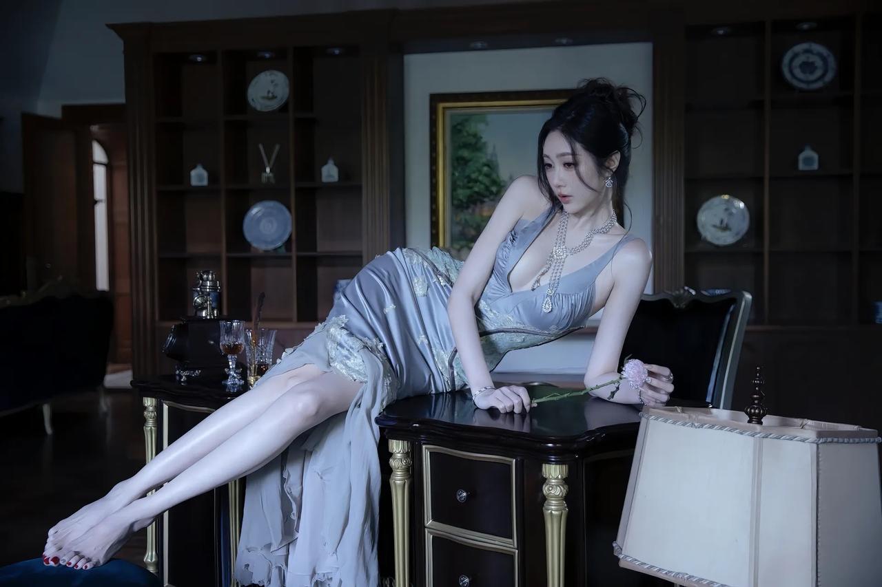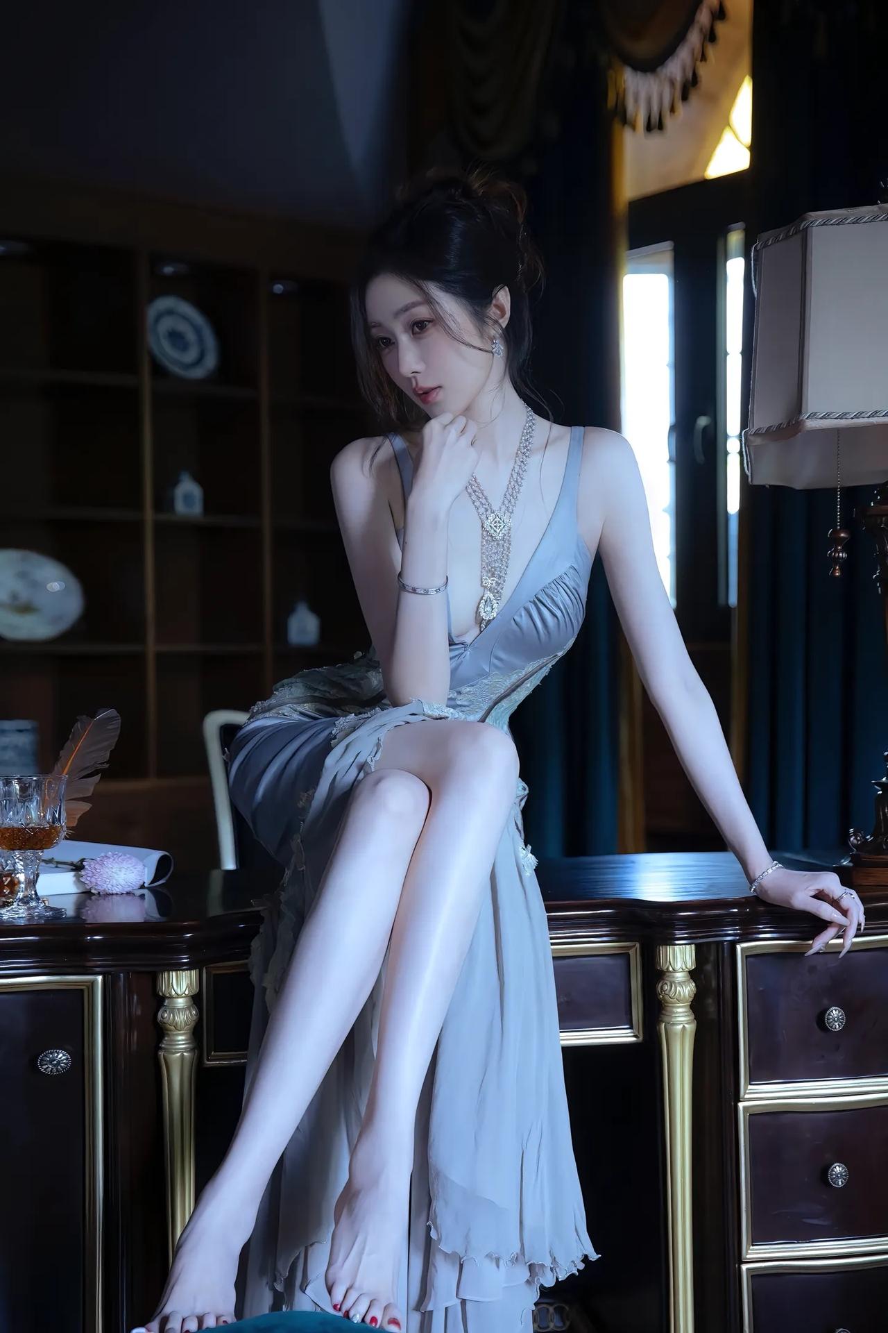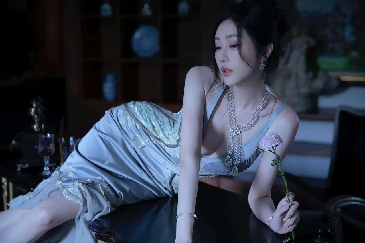 优雅气质,蓝裙美人,复古风尚,珠宝闪耀