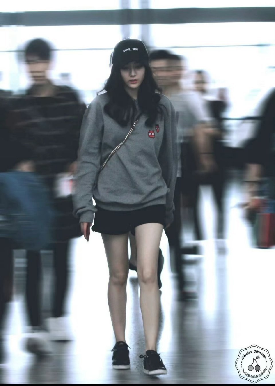 吴艳妮在成都穿着短裤大腿看起来很粗壮,表情自信又张扬