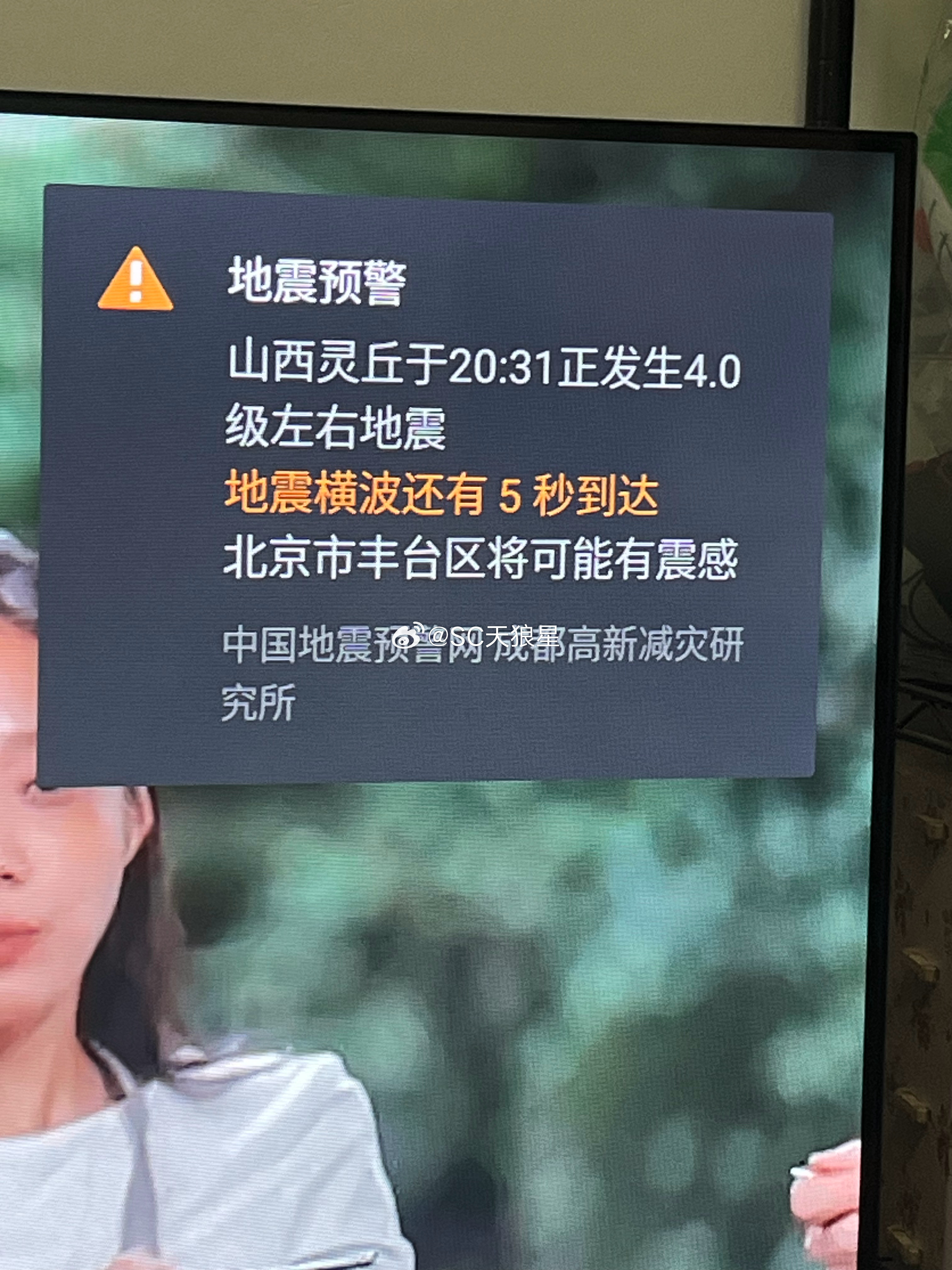 正低头吃着饭,突然电视里面来个警报,吓我一跳。等了5秒钟,发现啥晃动都没有地震预警山西灵丘地震大同地震