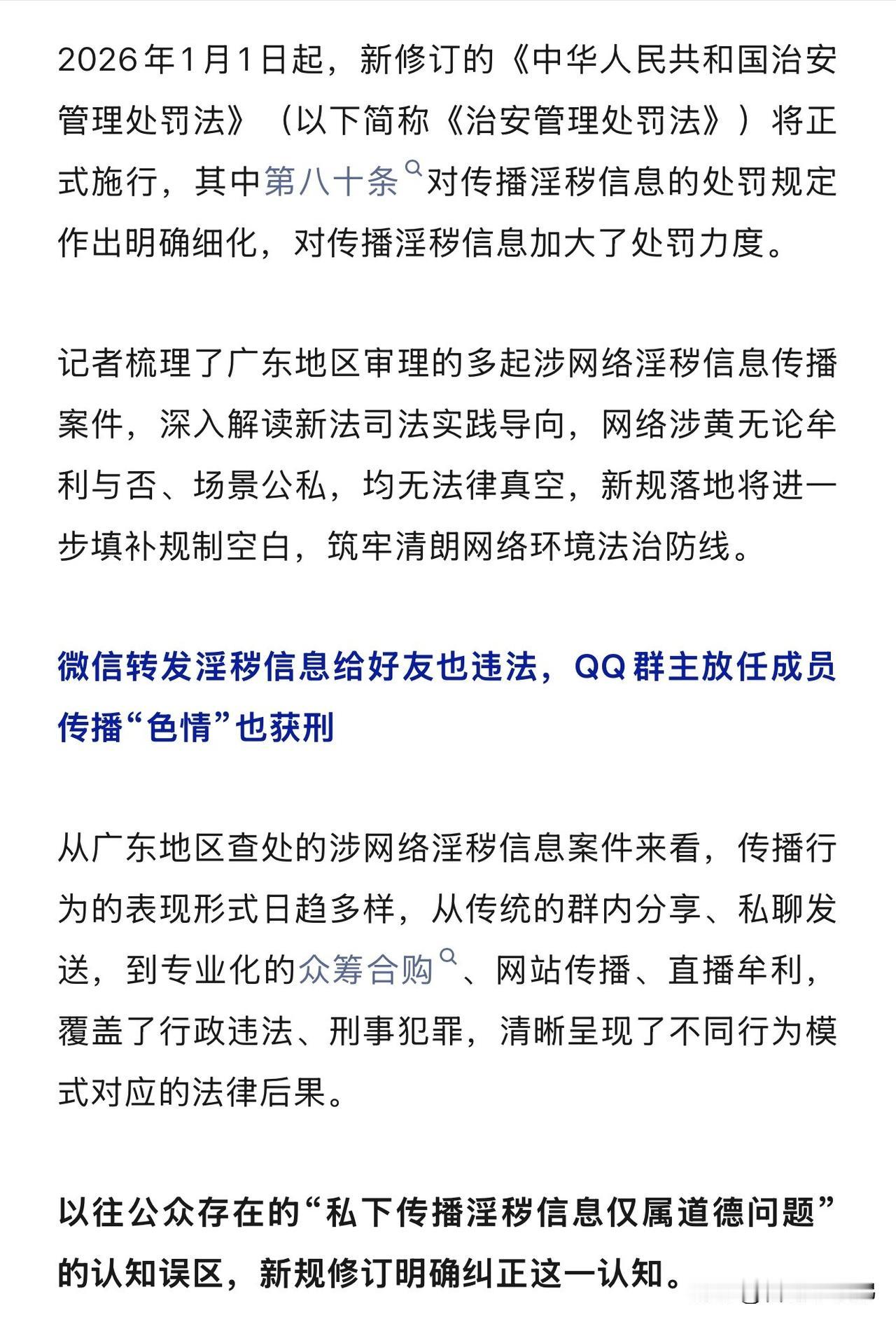 2026年1月1日起,即便是给好友发送淫秽信息,也属于违法行为! 别再抱有“熟人之间无所谓”的侥幸心理,这类行为不仅违背公序良俗,更会触碰法律底线,面临相应处罚。 网络不是法外之地,聊天框也不行!快转发给你的家人朋友,一起守好法律和道德的边界!爆料