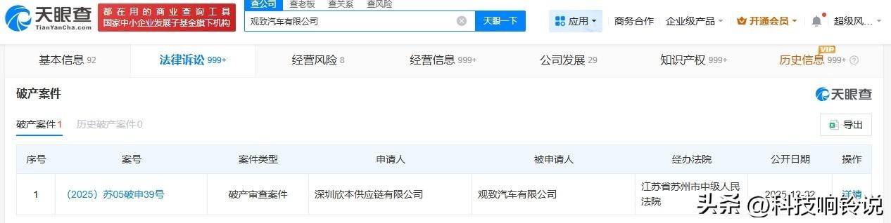 【观致汽车被申请破产审查观致汽车新增破产审查案件】 天眼查天眼风险信息显示,1